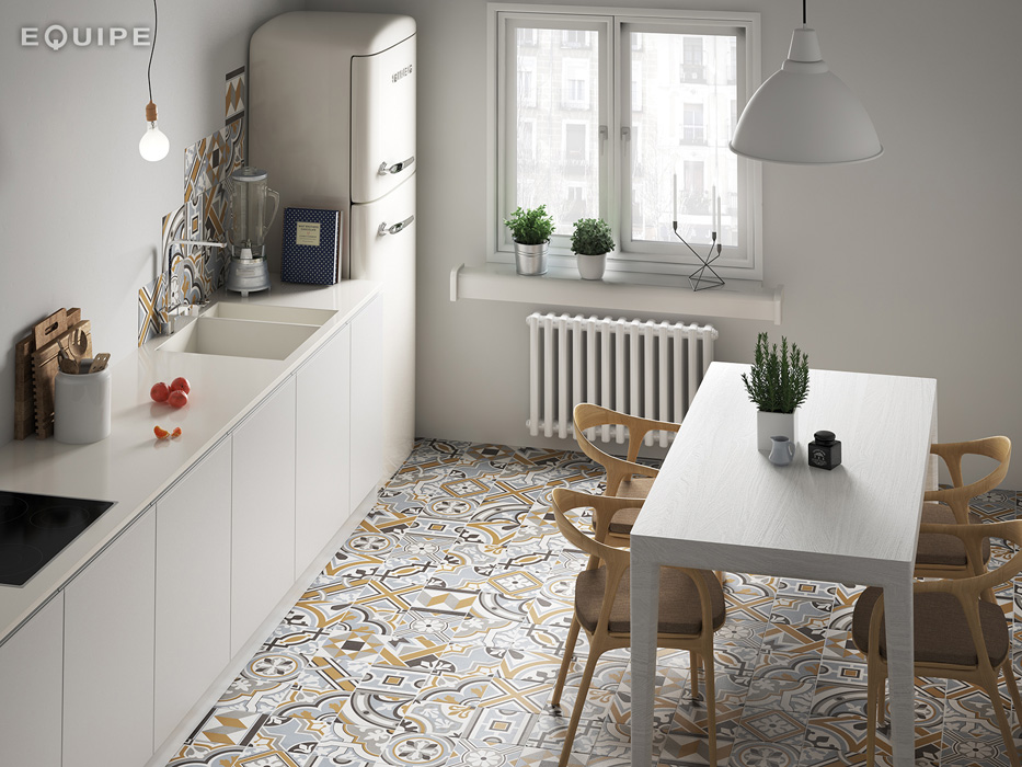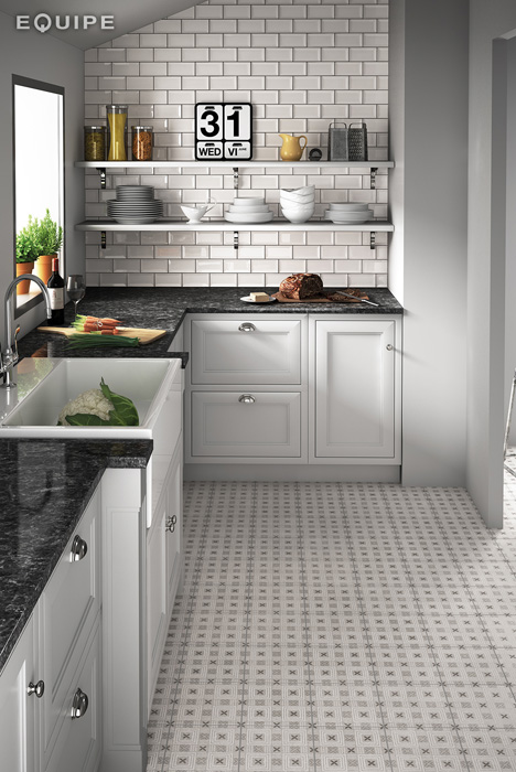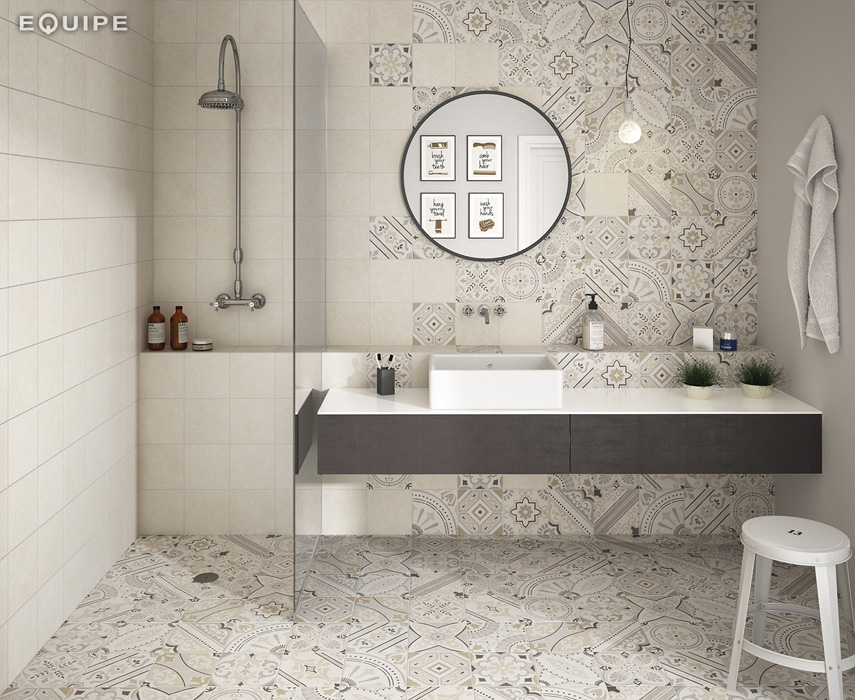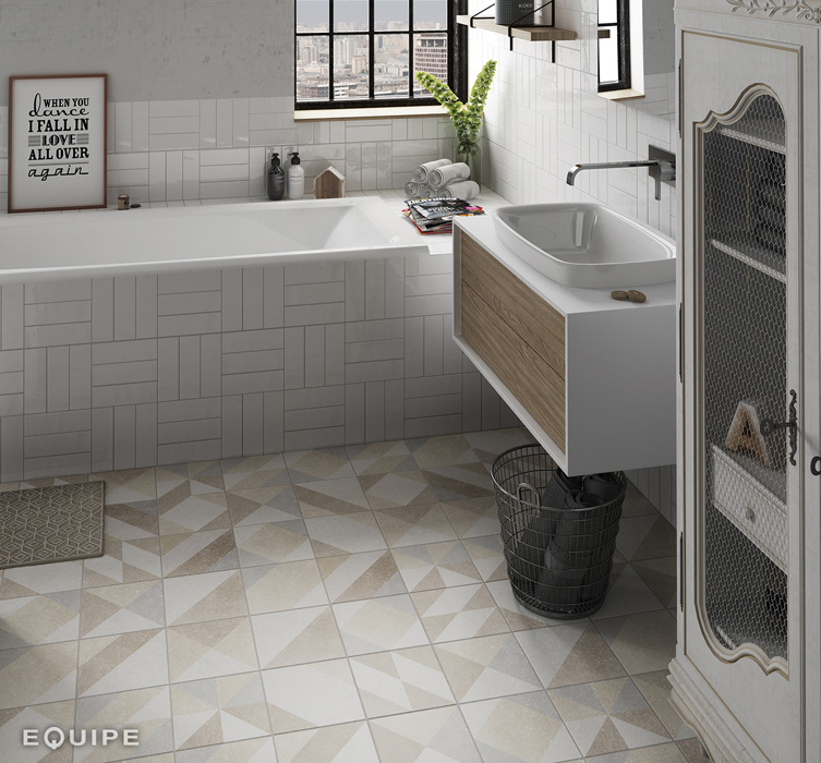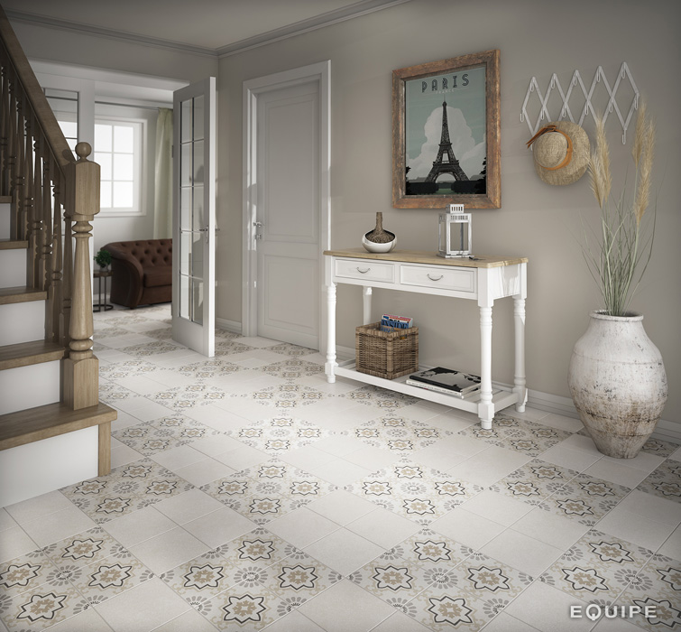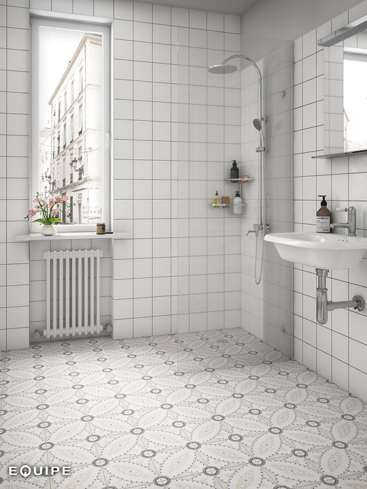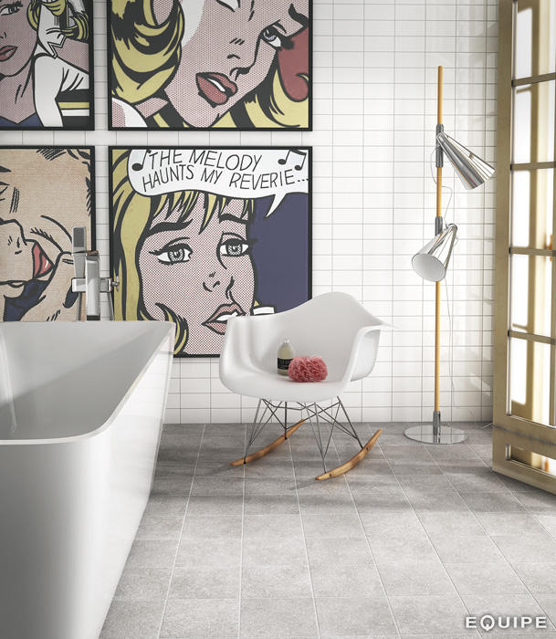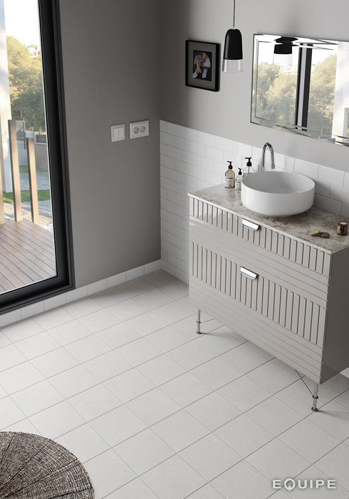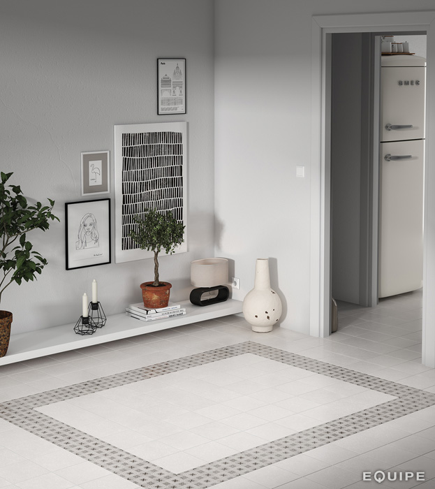 Поверхность плитки Micro матовая и не боится ни интенсивной нагрузки, ни укладки в проходных помещениях. Коллекция керамической плитки не боится высокой влажности и температурных перепадов. Она имеет значительный коэффициент антискольжения, что безопасно при оформлении влажных зон в ванной и санузле. Фабрика Equipe тщательно проработала палитру декоративных элементов, создав различные современные интерпретации классических мраморных полов: