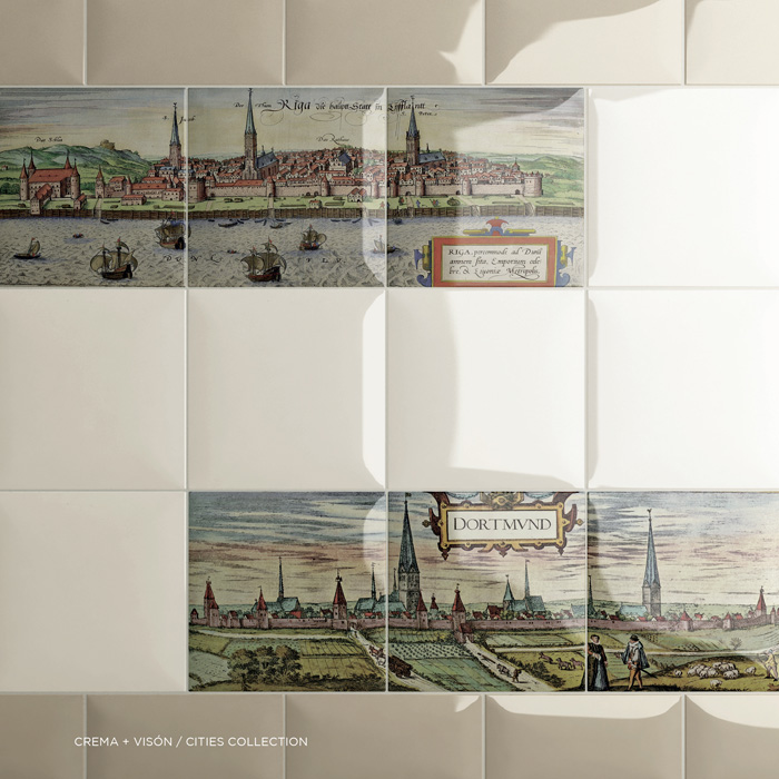 Яркие, погружающие в эпоху Средневековья: Amadis Fine Tiles Cities Collection с размером плитки 15х15 см с изображением панорам известных европейских городов Рига, Тюбинген, Дортмунд.