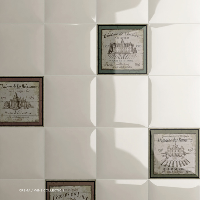 Винтажная коллекция винодельческой тематики (Amadis Fine Tiles Wine Collection) – это серия так же выполнена в формате 15х15 см и включает в себя отдельные самостоятельные декоративные вставки Wine Label 1,2,3,4 Deco и декоративное панно в стиле раннего импрессионизма Wine Picture 45х30 см (набор из шести элементов 15х15 см).