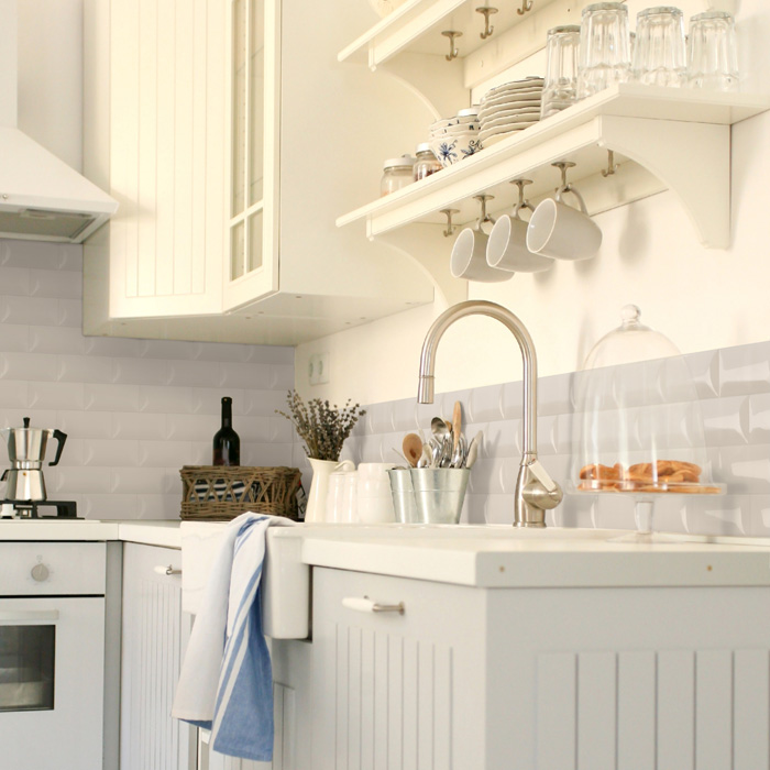 Коллекция керамической плитки Essensials от испанской фабрики Amadis - это коллекция в стиле французской и английской классики, выполненная из белой глины с глянцевой глазурью. Особенность поверхности – это слегка выпуклое тело плитки, за счет чего достигается дополнительный объем и оригинальность исполнения. Фоновая плитка Essensials от Amadis изготовлена методом сухого прессования с минимальным коэффициентом водопоглощения, что позволяет использовать коллекцию не только на рабочей зоне кухонных фартуков и, но и в помещениях с высокой влажностью: ванны и сауны. Плитка предназначена для внутренней отделки, при этом высокая ее огнеупорность позволяет облицовывать камины в стиле старинной Франции и Англии.