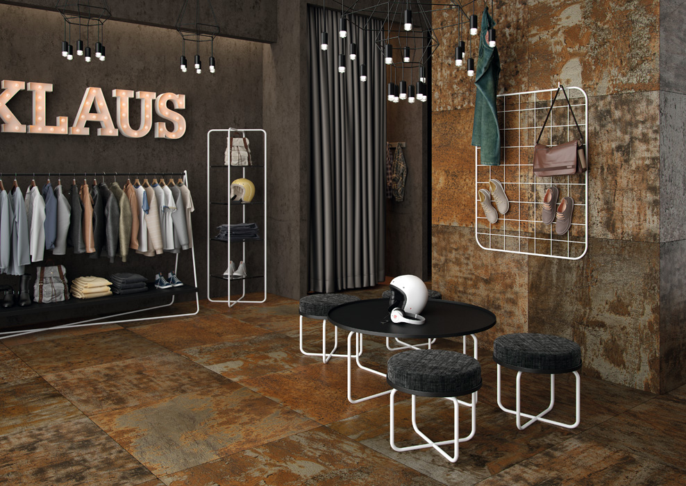 Металлизированные поверхности с легкой коррозией и лощеные поверхности драгоценных металлов стали вдохновением для создания коллекции Ferrum испанскими дизайнерами фабрики Aparici. Впервые представленная на престижной выставке Валенсии Cevisama 2016, серия керамогранита произвела настоящий фурор своей брутальностью и смелым дизайном. Напольная плитка Ferrum представлена в четырех оригинальных оттенках: