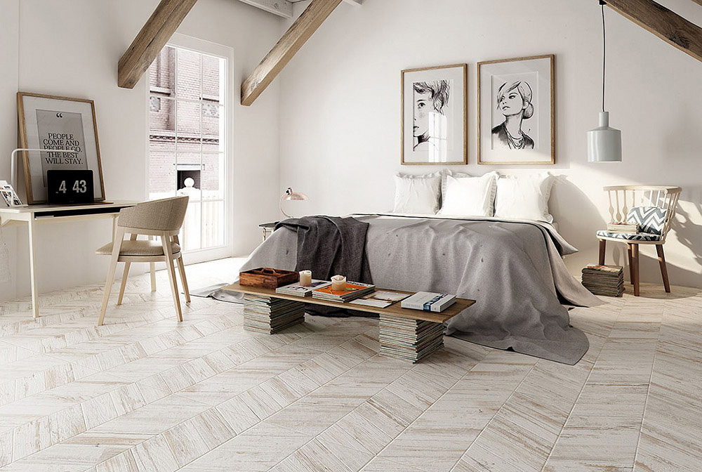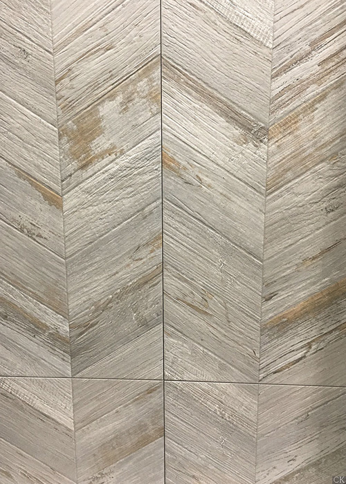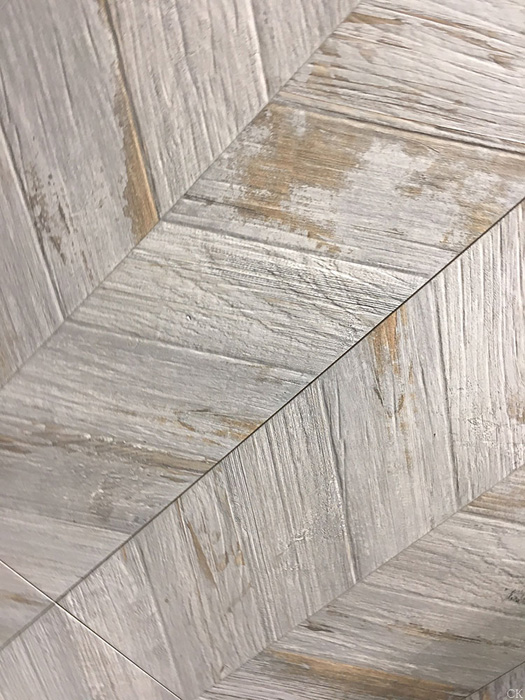Помимо этого предлагается микс из четырех оттенков Spiga Tribeca Mix. Визуально каждый модуль состоит из плиток с косым зарезом каждая под 45°. Такую укладку на полу можно сравнить с классической французской паркетной укладкой с выразительным, цельным и элегантным рисунком состаренной и выбеленной древесины. Такой способ укладки деревянных плашек ухолит глубокими корнями в прошлое. Первыми упоминаниями о таком способе оформления полов были в 1690 году воспоминания архитектора Никодермуса Тессина (Nicodermus Tessin) Версальского дворца и Парижского Лувра. Таким образом, использование декоративных плашек в готовых декоративных модулях значительно упрощает укладку по сравнению с традиционным паркетным способом. Ориентирует интерьер в классическом направлении, но за счет текстурирования текстуры в более уютном, теплом деревенском ракурсе. Идеально для оформления дизайна в английском рафинированном шебби-шик, французском Провансе и Южноамериканском кантри.