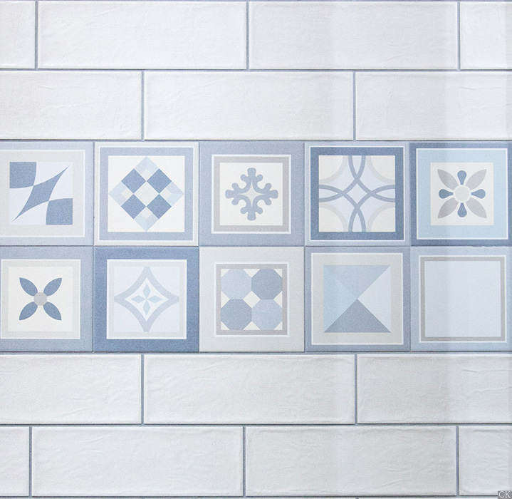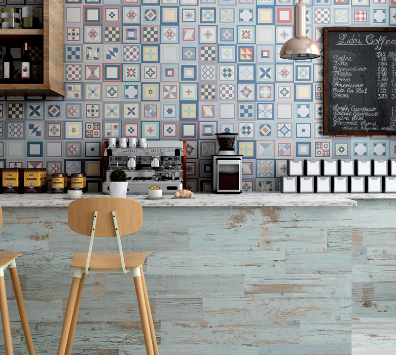 Самый необычный цвет в коллекции Tribeca - голубовато-зеленый Tribeca Aqua. Он отлично дополнит винтажные интерьеры, помещения в стиле кантри и прованс, станет украшением частных домов и магазинов. Цвет удачно дополняют декоры Grenier, которые фабрика производит как самостоятельную коллекцию, однако рекомендует использовать вместе с плиткой Tribeca