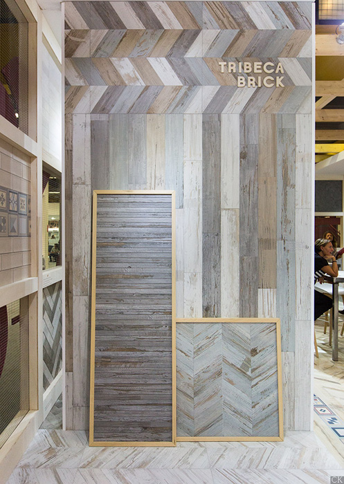 Подчеркивая винтажный стиль, в качестве декоративных элементов в коллекции напольного керамогранита Tribeca от Gayafores предлагаются настенные модули с эффектом мозаичных планок: Tribeca Wall Blanco, Tribeca Wall Miel, Tribeca Wall Gris, Tribeca Wall Aqua и микс, включающий все четыре оттенка фоновой плитки Wall Mix. Настенный вариант выпускается в размере 32х62,5 см