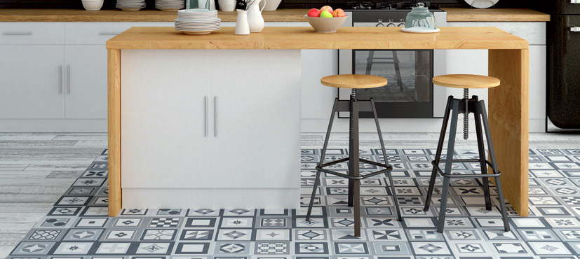 эффектом пэчворк, состоящие из четырех фрагментов каждый Grenier Mix, Grenier Grey, Grenier Black 33,15х33,15 см