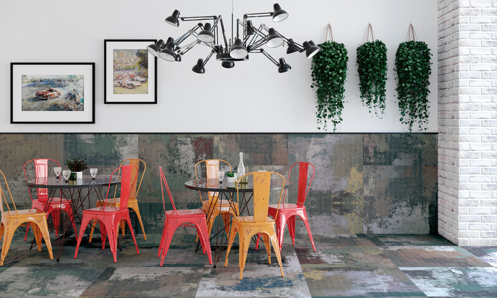 Коллекция Land Go впервые показана в 2018 году на выставке Cersaie, в Италии. Эта творческая, смелая коллекция задумана для настоящих художников. Фоновый рисунок напоминает плетение холста, мотки ниток, тканевый узор. Цветной рисунок напоминает пятна краски, оставшиеся в мастерской артистов. Дизайнерская, амбициозная, необычная, красивая – все это про коллекцию Go! фабрики Land Porcelanico.