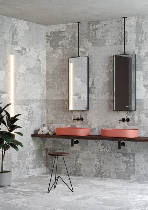 Материал коллекции – керамогранит. Он выпускается в двух размерах: 90х90 см и 45х90 см. Благодаря использованию новых технологий, толщина керамогранита – всего 7,5 мм. При этом высокая прочность позволяет использовать его как дома, так и в коммерческих помещениях.