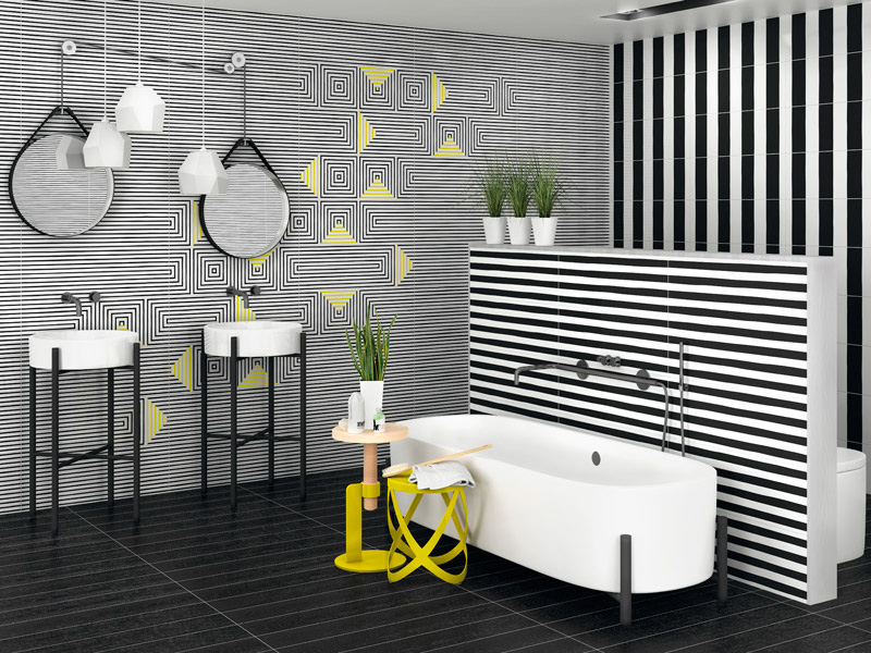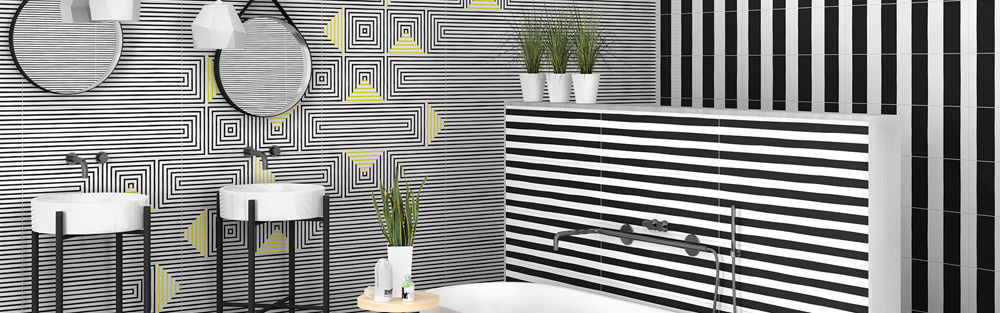 • Sasak-7 - ультра креативное пестрое панно с элементами китча и оп-арта, оптической иллюзии с визуальным изменением формы плитки (Black, Light). В сочетании с орнаментальной плиткой Omo панно можно выстраивать в хаотичном порядке, создавая причудливые иллюзорные эффекты искривления линий;
