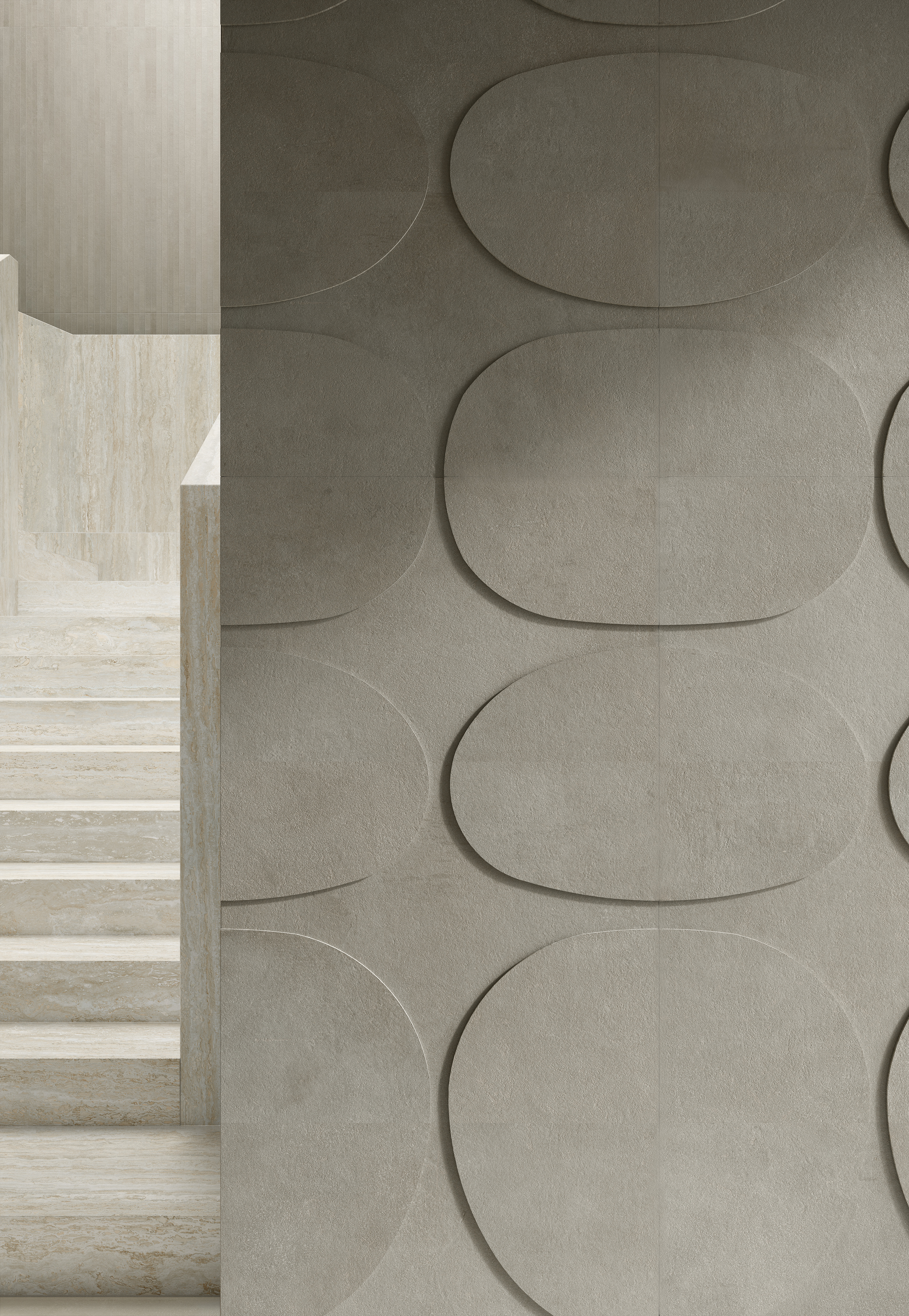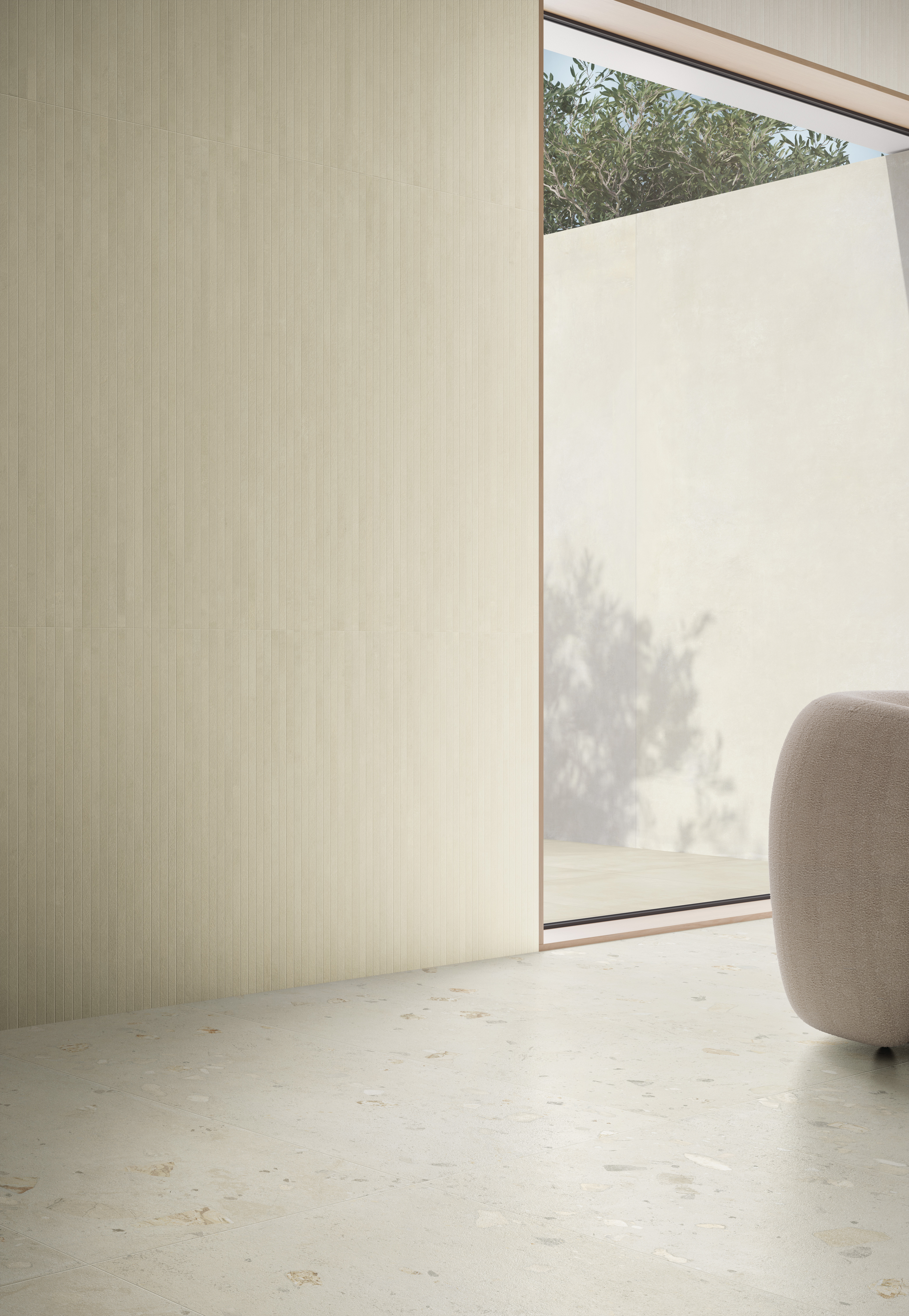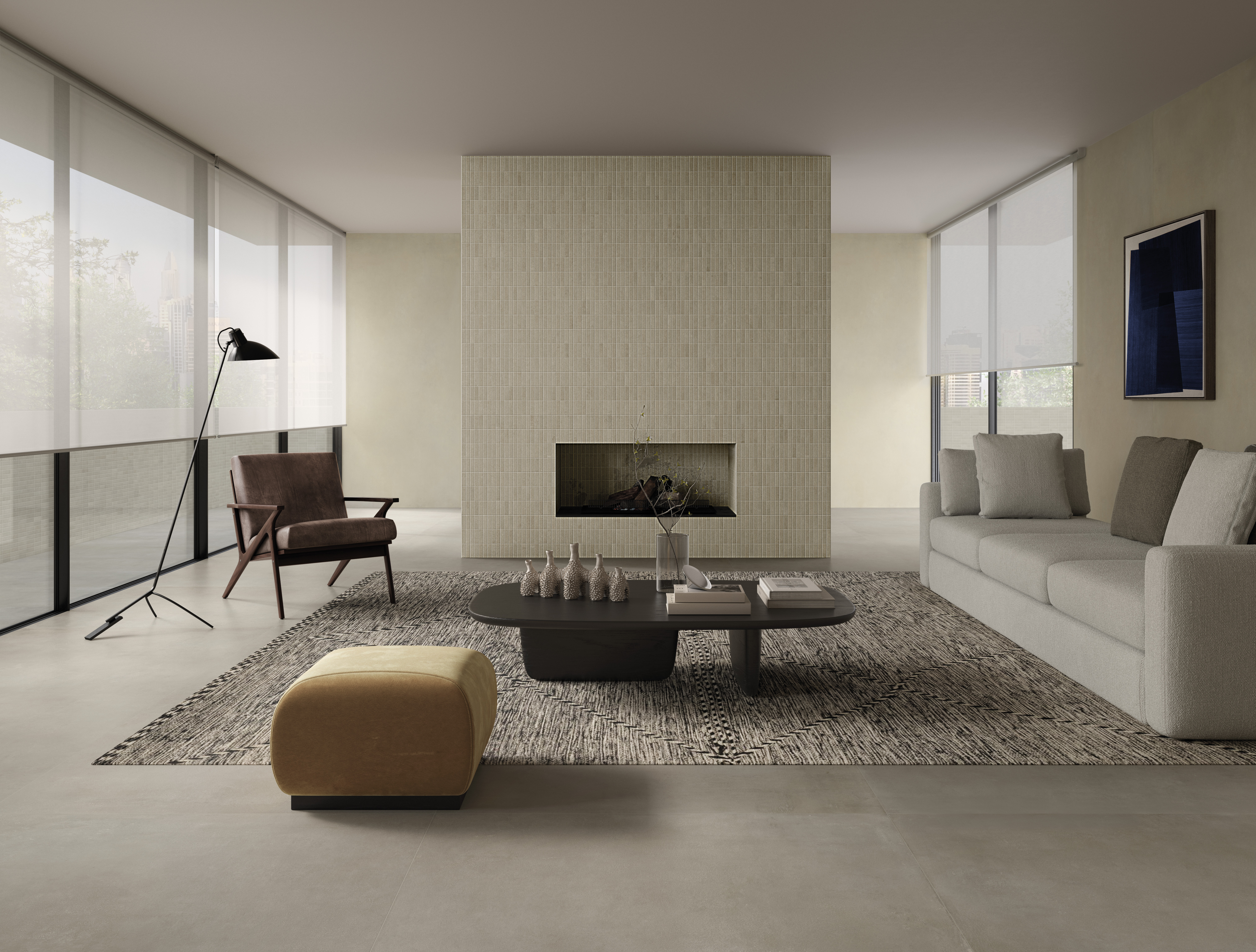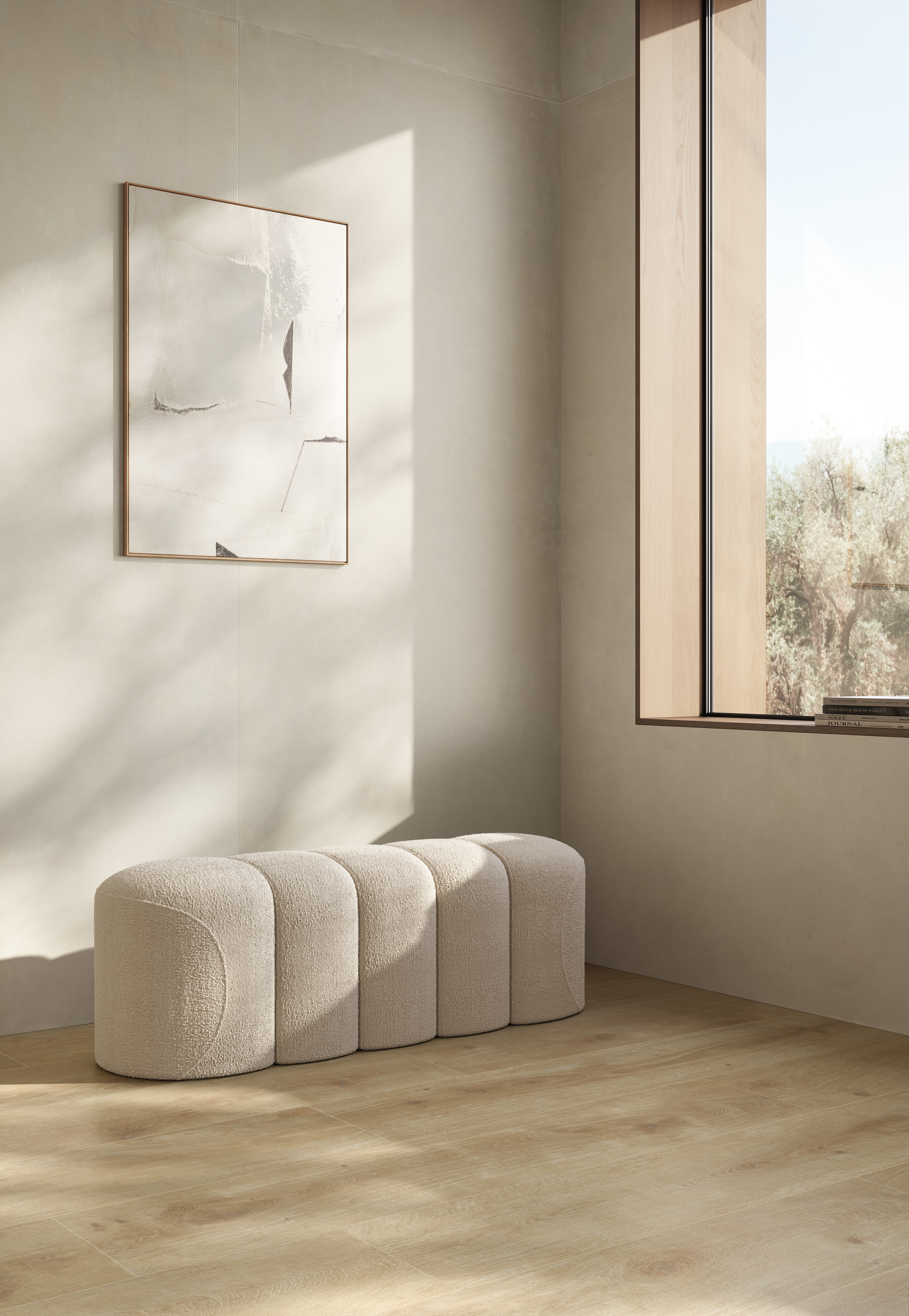 Его универсальность подчеркивается лёгкостью сочетания с самыми разными материалами и стилями. Палитра коллекции переосмысливает эстетику цемента и включает семь гармоничных оттенков: White, Beige, Flax, Taupe, Greige, Grey и Dark.