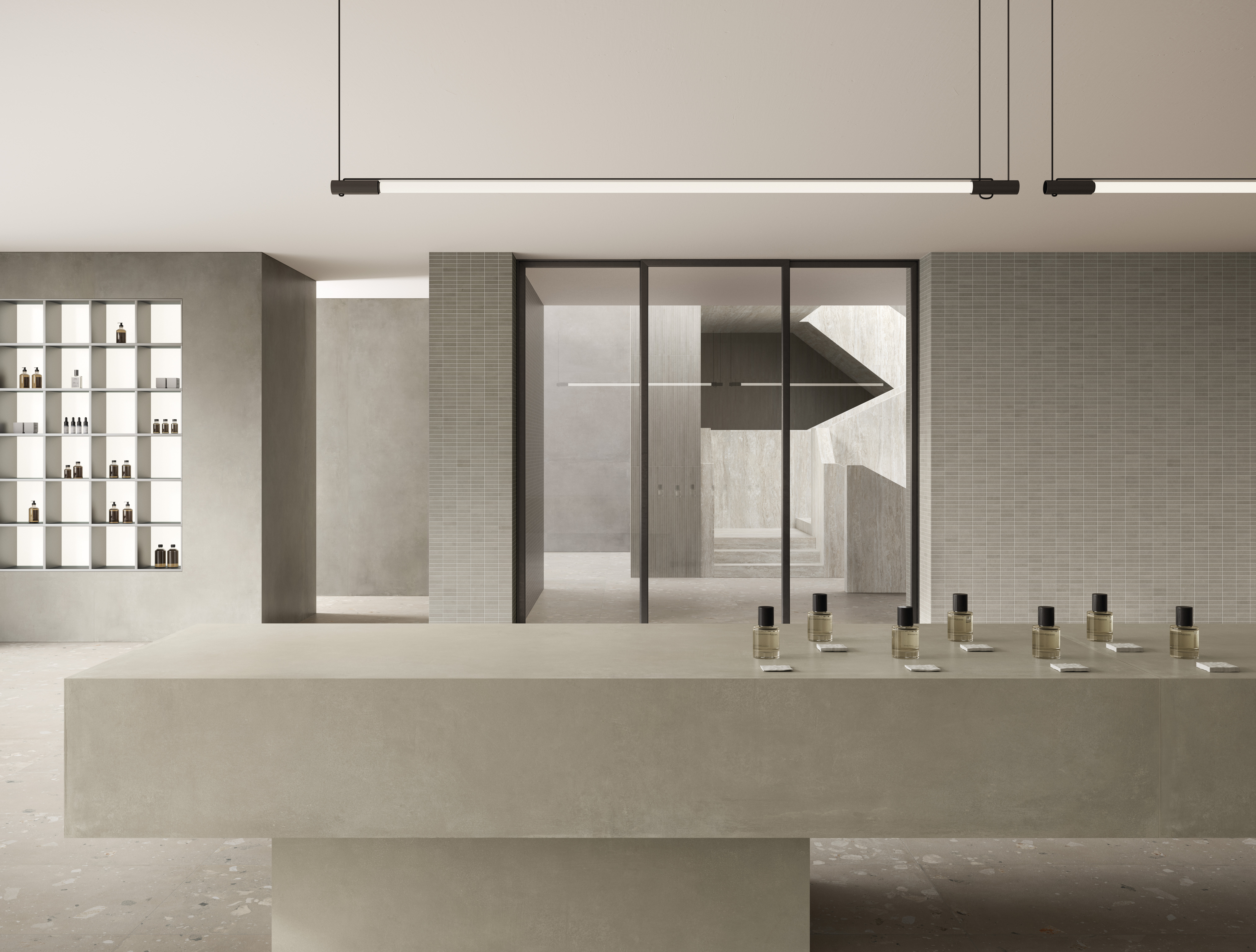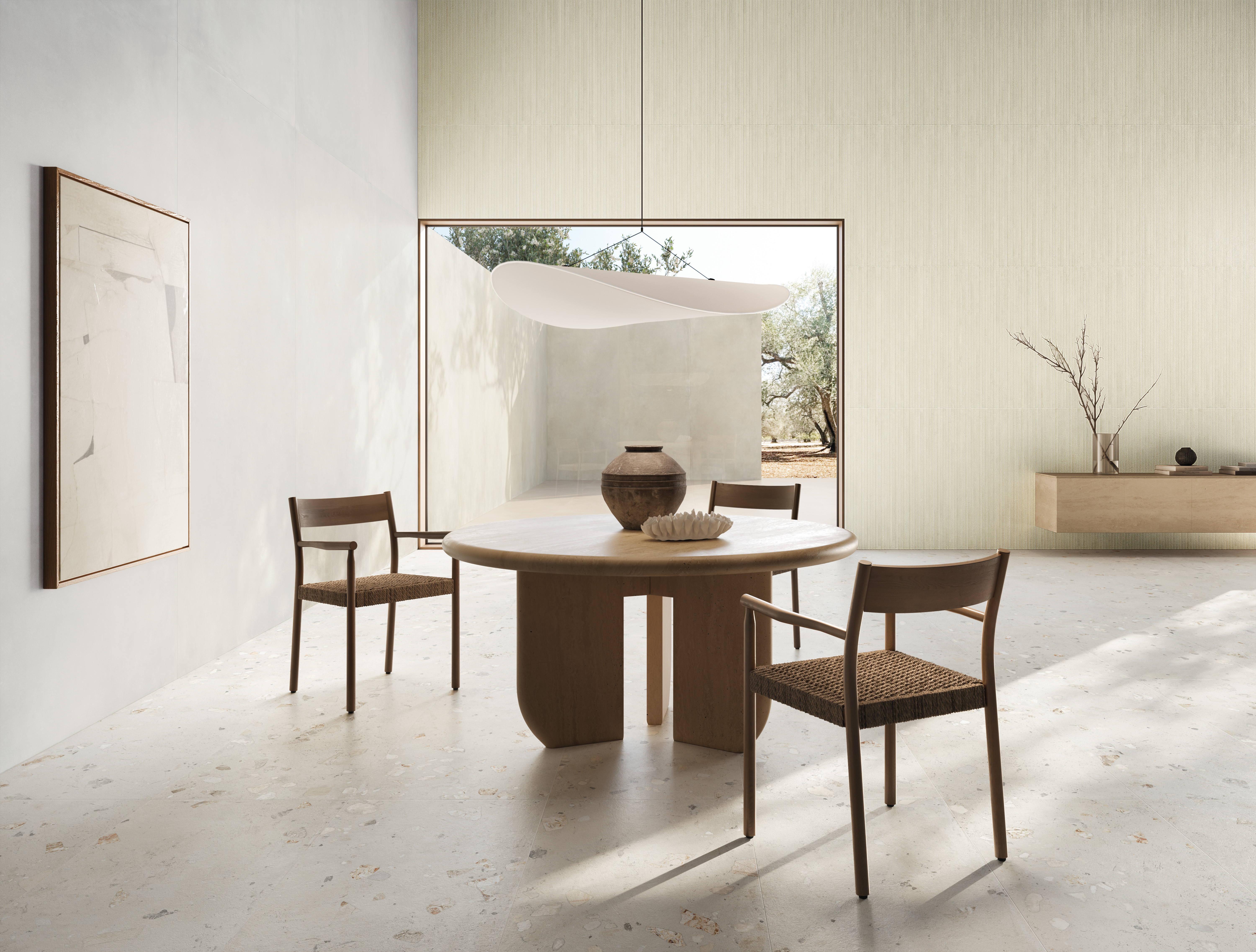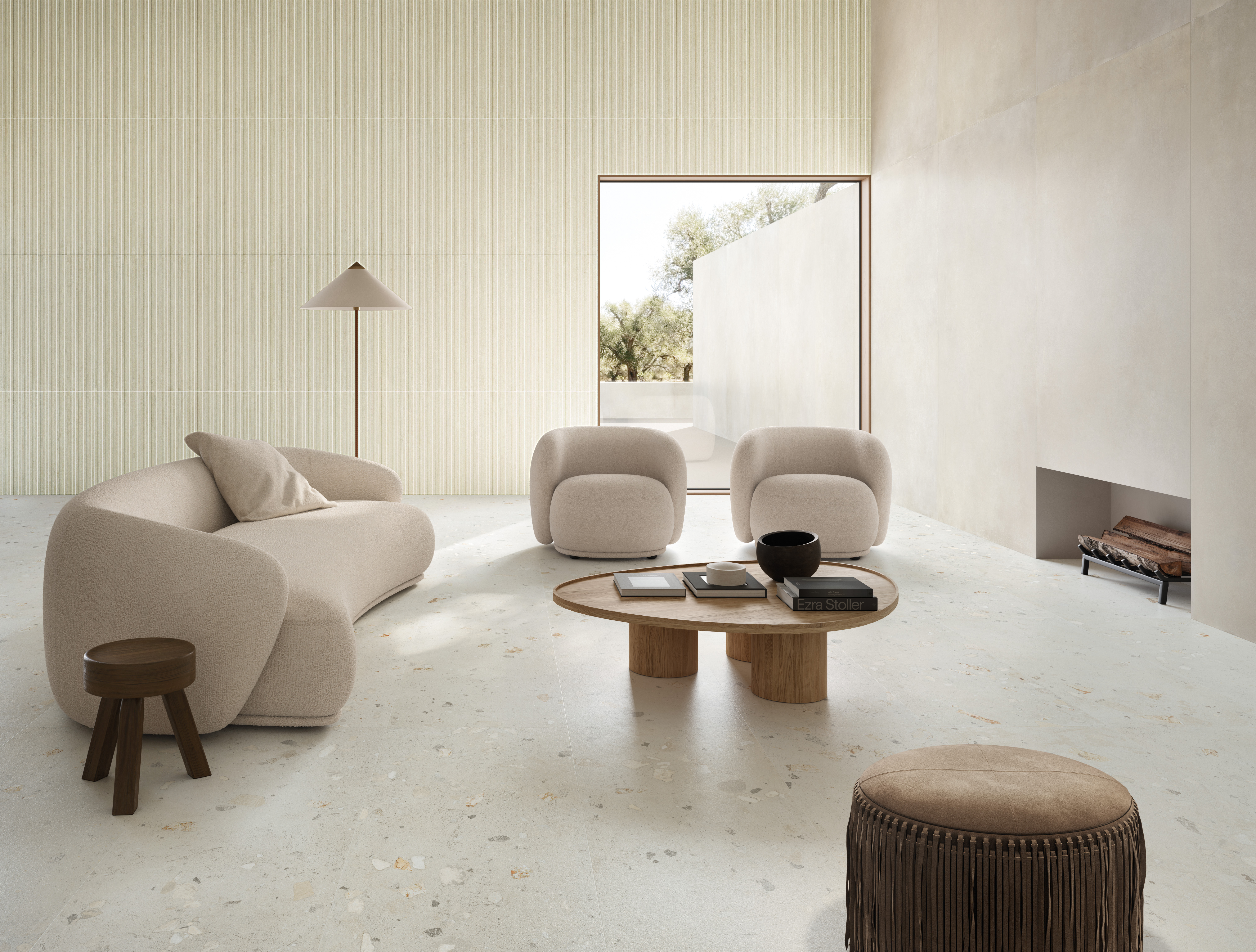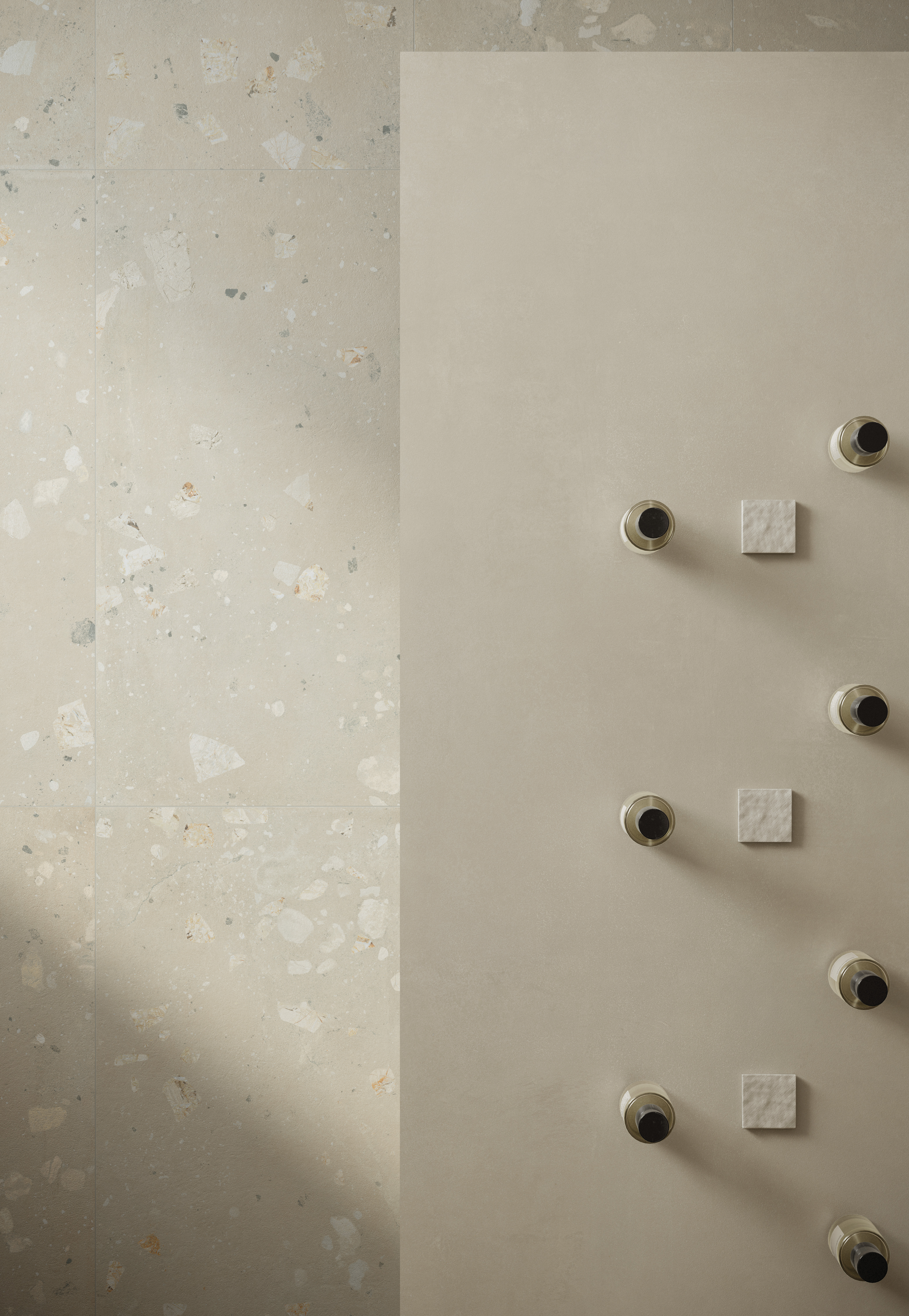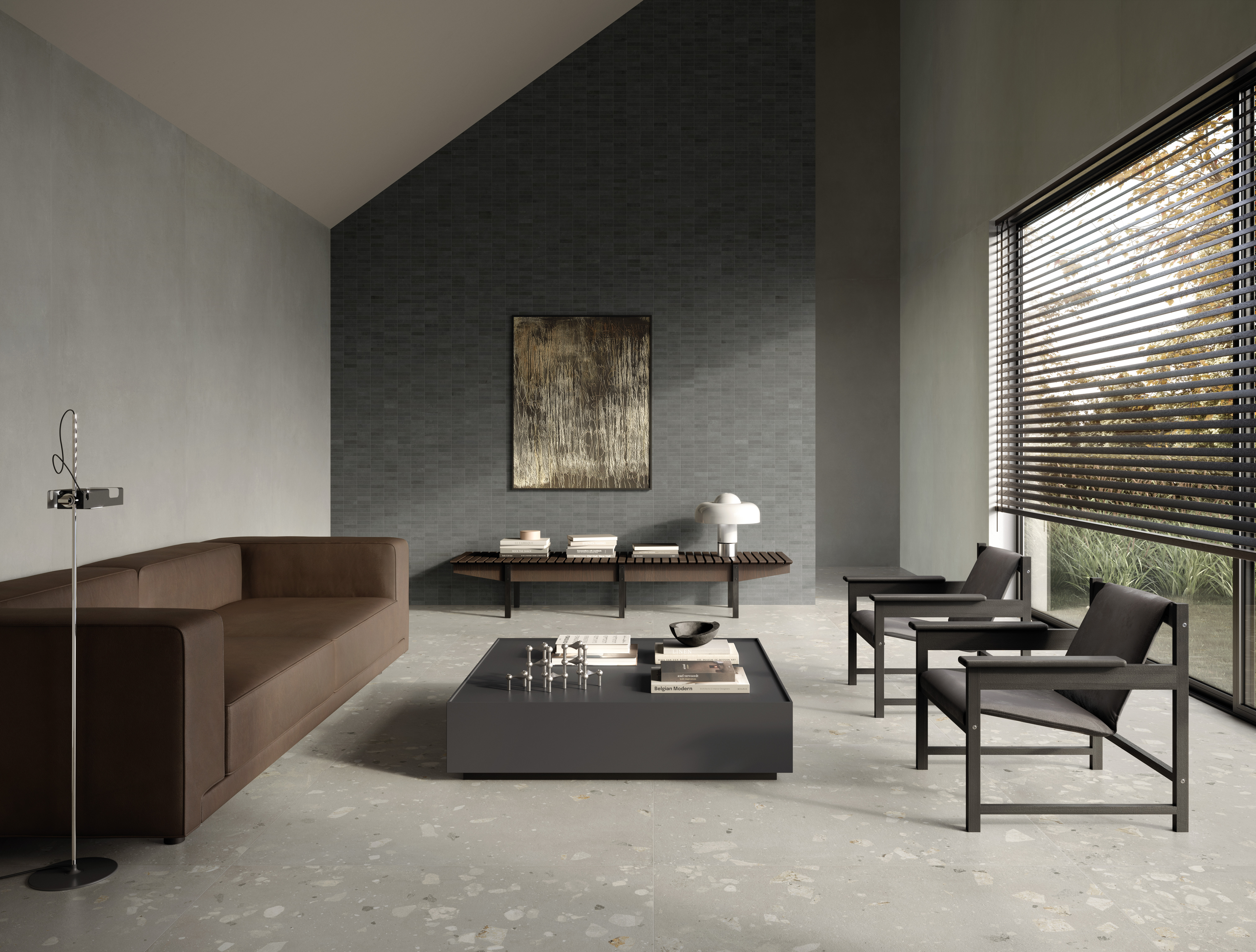 Его универсальность подчеркивается лёгкостью сочетания с самыми разными материалами и стилями. Палитра коллекции переосмысливает эстетику цемента и включает семь гармоничных оттенков: White, Beige, Flax, Taupe, Greige, Grey и Dark.