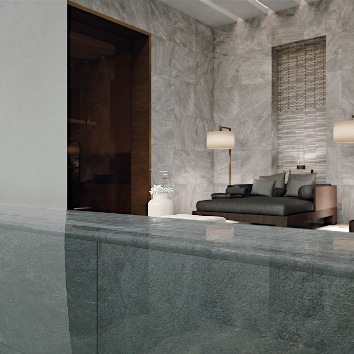 В коллекции Climb декоры Pavone выполнены в оттенках Ice, Rope, Rock. Модули Materia Blocks представлены в цветах Titanio и Magnesio, олицетворяющие песок и угольно-черыне сланцы. Если серия Climb имитирует поверхность кварцита, то серия керамогранита Materia – это различные сланцевый породы и известняковые слэбы. Обе серии соединяют воедино очарование и неповторимую атмосферу природного камня, гармонично вписывающегося в современные урбан интерьеры. Увеличенная толщина декоративных орнаментов Blocks и Pavone 20 мм позволяют использовать серию даже в самых суровых климатических условиях и при интенсивных нагрузках.