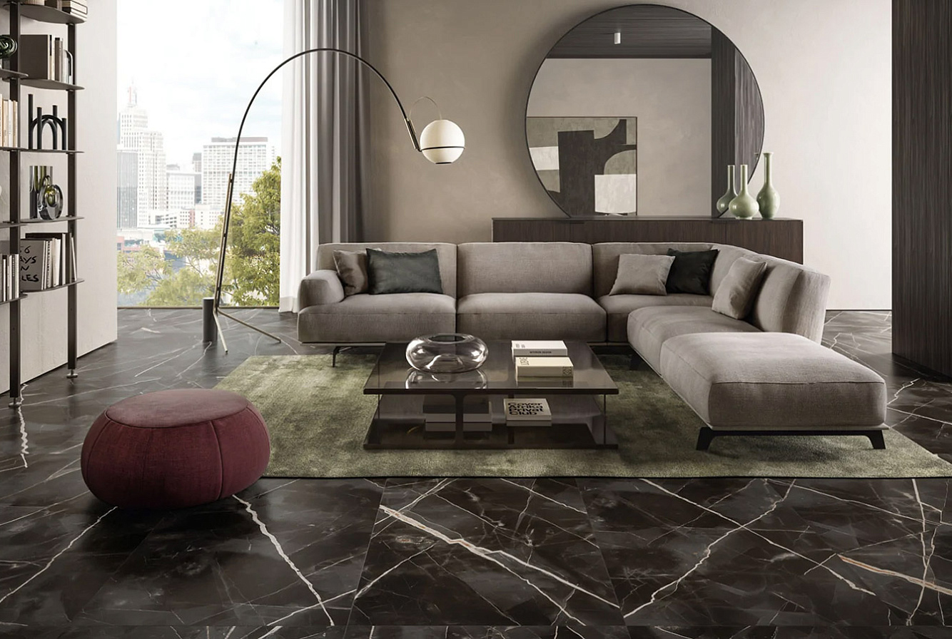 Модель ABSOLUT BLACK – идеальна для тех, кто хочет купить керамогранит для создания элегантного изысканного интерьера. Контрастные белые и золотистые акценты на фоне насыщенного черного цвета играют здесь ведущую роль.