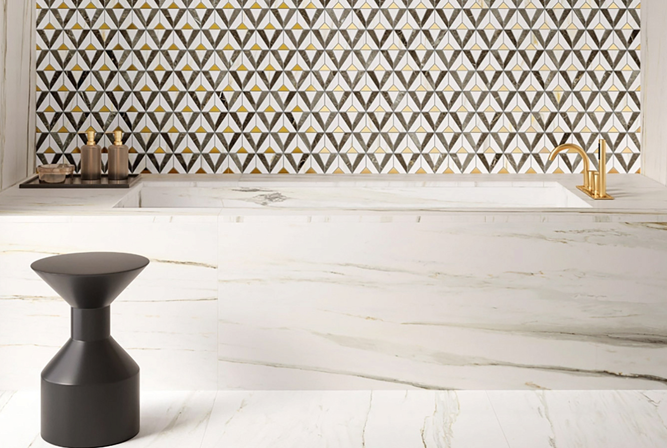 Для реализации самых смелых дизайнерских идей подойдут и декоративные элементы с геометрическими вставками в виде мозаик, представленных сериями Даймонд, Орфеус, Арган.