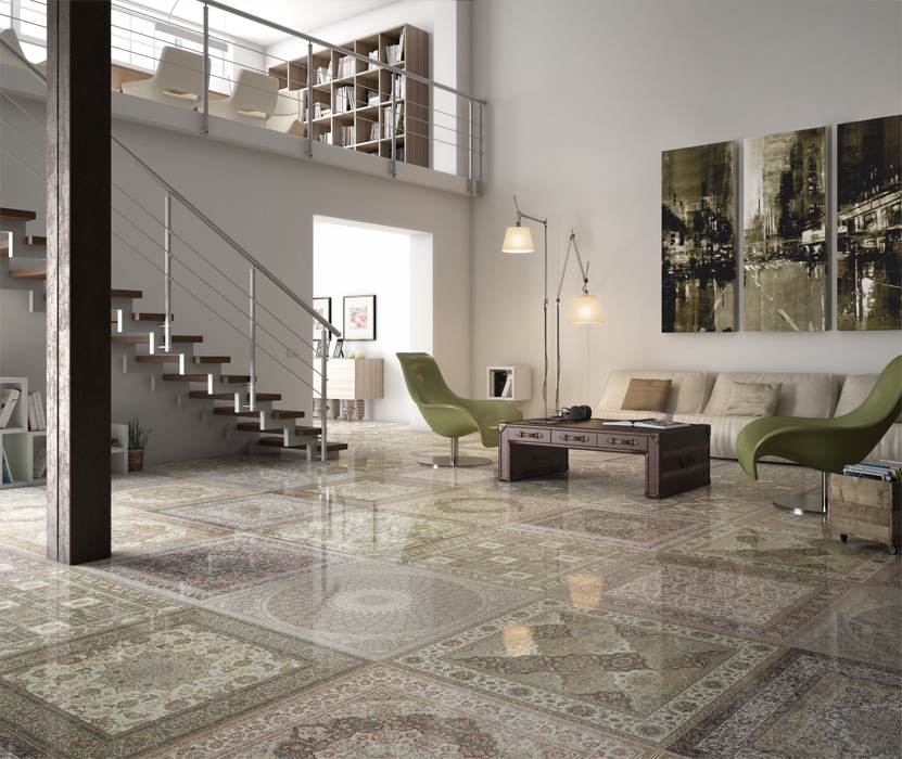 Все великолепие и роскошь Востока с волшебством тысячи и одной ночи воплощает в себе новинка от испанских дизайнеров Aparici, продемонстрированная на престижной выставке Cevisama 2016 – Aparici Kilim Pulido. Яркие и насыщенные краски арабского стиля собраны в многочисленных вариантах рисунка Kilim Nain.