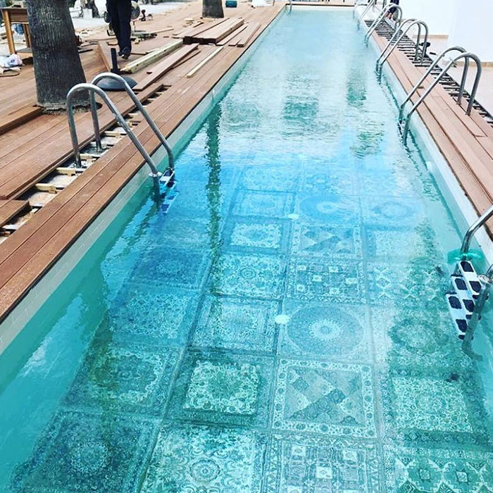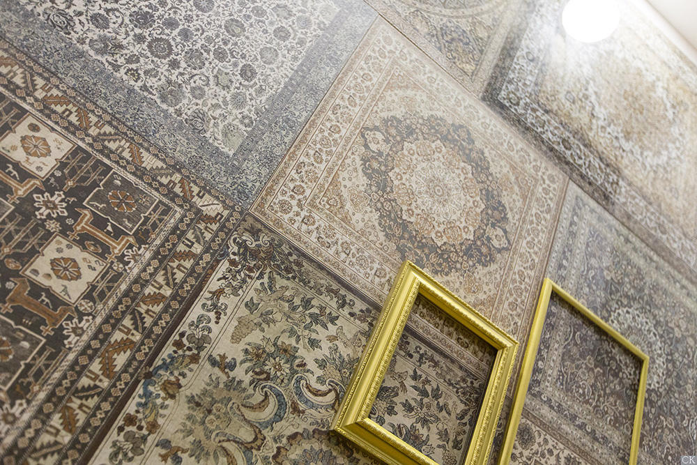 Кружевная восточная вязь, эффектная игра света на поверхности полировки воплощены в традиционных для Исламской культуры рисунках Kilim Nain: Афшан» – повторяющийся трафаретный орнамент по всей плитке, классический «Махи», имитирующий чешую рыбы, «Хешти» - деление коврика на отдельные сектора с изображением трафаретного принта, «Гондбад» - изображение купола мечети в панораме, в виде многочисленных сводов, уносящих взгляд ввысь.