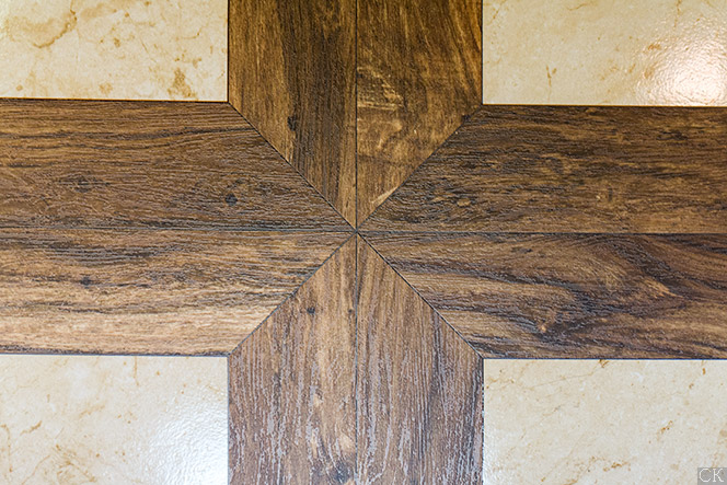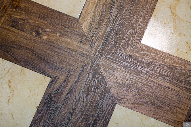 Центральная часть декора сделана под дерево, в том же тоне, что и фоновая плитка Lord