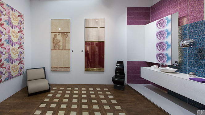 Мы специально разместили фотографию с выставки для того, чтобы вы могли увидеть как легко сочетается плитка Lord с разными стилями и разными оттенками настенной плитки.