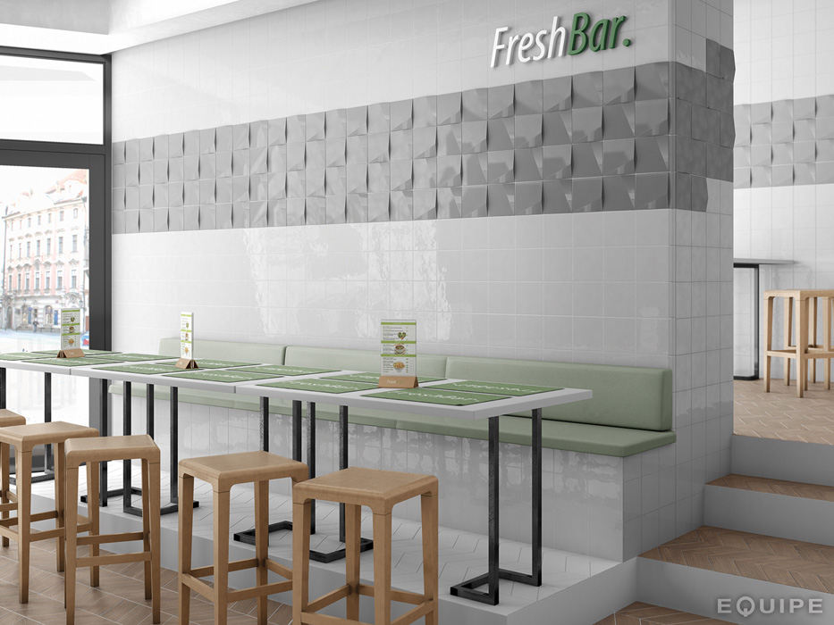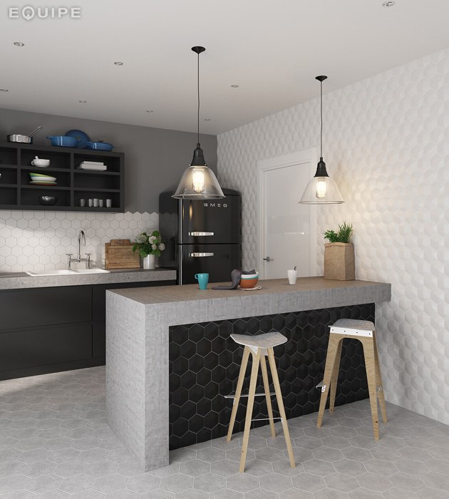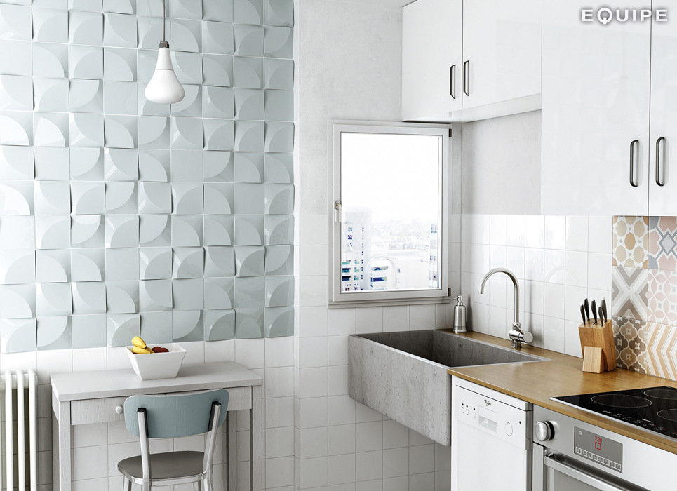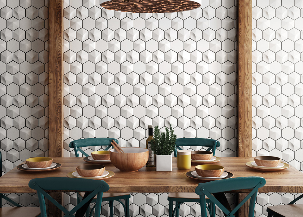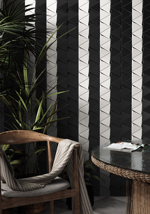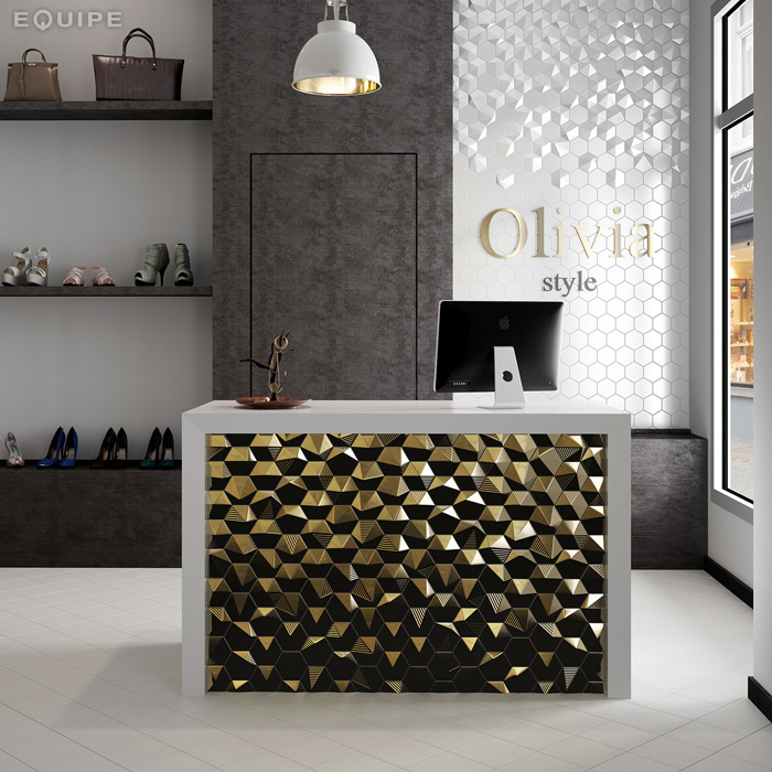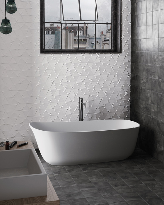 Magical – коллекция керамической плитки с футуристичным дизайном. В наличии на складе выпуклая плитка Umbrella Плитка формуется из белой глины и декорируется оригинальной выпуклой поверхностью, которая напоминает конус. При этом “направление вращения” отличаются между собой. На одну грань конуса наносятся рельефные полоски. Размер плитки 12,4х10,7 см. Цветовая палитра включает 13 оттенков с глянцевой, матовой и сатинированной глазурью. Глянцевый оттенки включают: white белый и cream кремовый; greige песочный и mint ментоловый; light grey светло-серый и sky blue светло-голубой; black черный и dark grey темно-серый; electric blue ультрамарин и metallic золотой. Матовая плитка: white matt белый и black matt черный. Сатинированная плитка: white pearl.