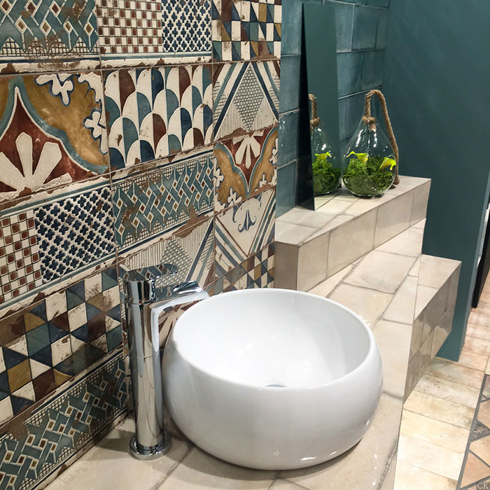 Новая серия от известной испанской фабрики известна своими коллекциями с восточным колоритом небольшого размера. На выставке в Италии Cersaie 2016 была представлена очередная новинка для любителей аутентичных поверхностей и этнической колористики – Mainzu Esenzia. В переводе с латыни Esenzia означает эссенция или сущность. Коллекция включает как фоновую плитку, так и серию декоративных элементов в размере 15х30 см.