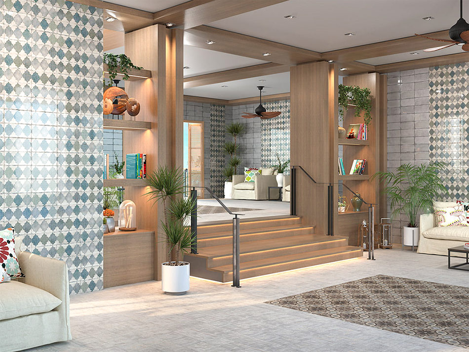 Декоративная подборка – это шесть различных принтов для интерьера различной стилистической направленности: Esenzia Fabola Green и Esenzia Fabola Blue – романтичная акварельная зарисовка для романтичного интерьера стиля прованс, Esenzia Fenice – мавританский трафаретный орнамент в холодной зеленовато-голубой гамме, Esenzia Valentina – деликатная оптическая иллюзия с элементами современного оп-арт, Esenzia Gondola – восточная принт с арочными элементами, Esenzia Padua – вставки с элементами традиционного пэчворка. Вся коллекция Mainzu Esenzia рекомендуется фабрикой для укладки на стены в ванной комнате, на кухне в зоне кухонного фартука, создавая неповторимую обстановку с атмосферой жаркого востока.