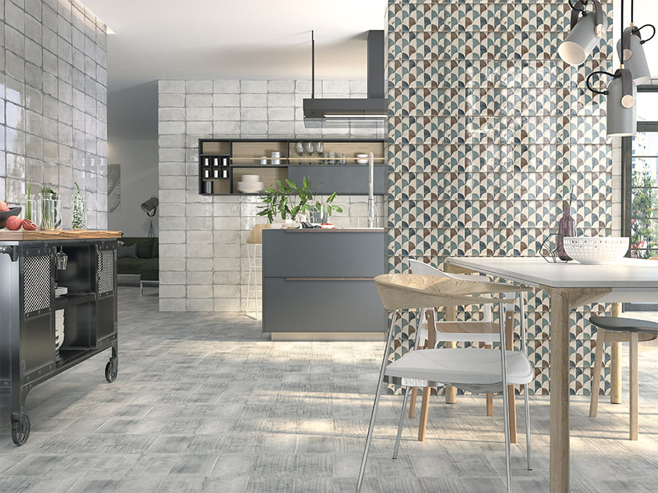 Однотонная плитка выполнена в шести оттенках: Esenzia Blanco – белый, Esenzia Grano – сливочный, Esenzia Perla – перламутрово-серый, Esenzia Mare – мятный, Esenzia Terra – терракотовый, Esenzia Note – кобальтовый. Вся плитка покрыта глазурью со значительным разнотоном на смальтированной поверхности, что подчеркивает натуральность и естественность с винтажной ноткой.