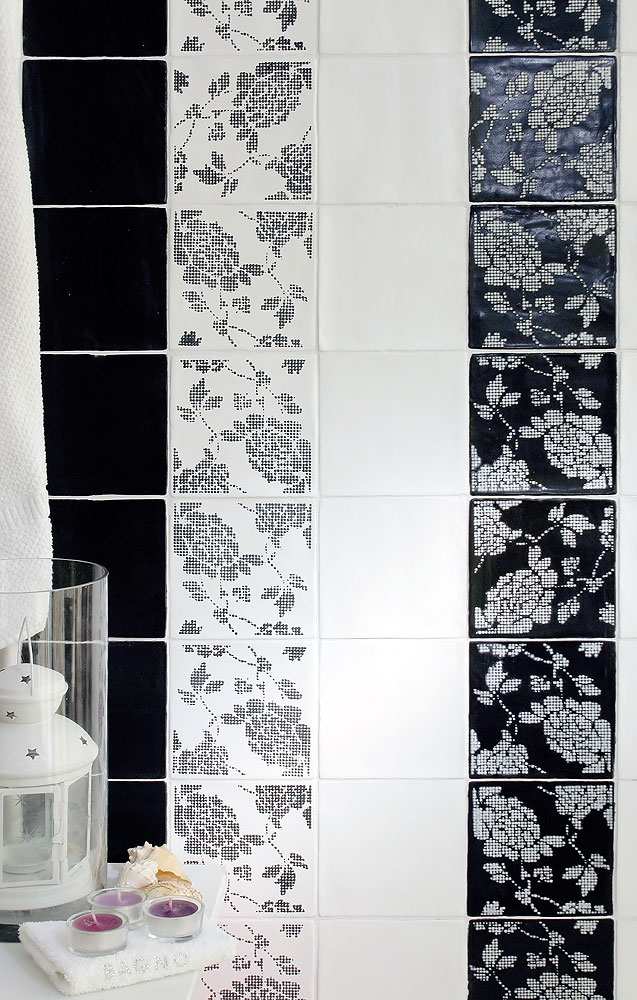Для декора Self предлагает выбрать один из наборов. Комплект «Сладкая жизнь» представляет собой набор плиток размером 6,5х13 см черного или белого цвета, с нанесенными словами: passione, eleganza, creativita, emozione, desiderio, fantasia, idea, amore, gioia. Комплект из 7 слов «Города» представлен плитками размером 6,5х39,6 см с нанесенными на них названиями известнейших столиц мира: London, Paris, Tokyo, Sydney, New York, Oslo, Roma. Декоративные вставки «Роза» имеют размер 13х13 см. На черном или белом фоне контрастным цветом нанесен цветочный орнамент, напоминающий вышивку крестиком.