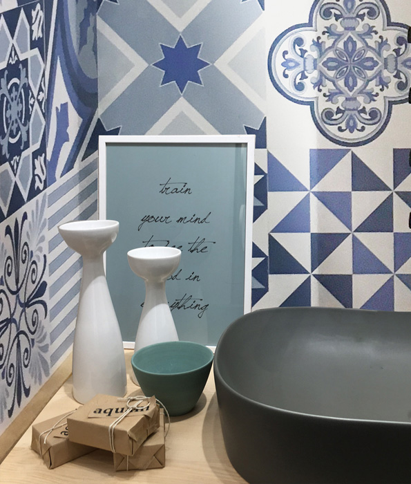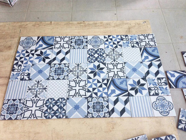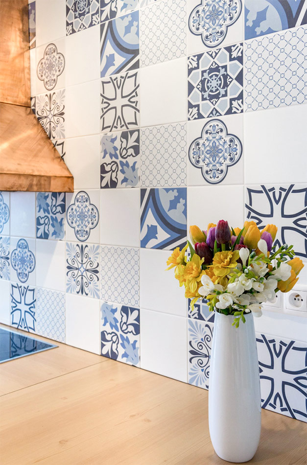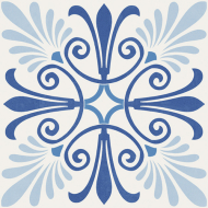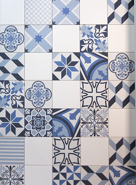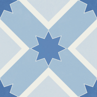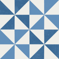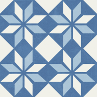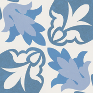 Moving Blue 20 х 20 см – серия с более классическими майоликовыми сине-бело-голубыми орнаментами в 13-ти различных вариантах. Поверхность плитки матовая. Рисунки включают как классическую полоску (для помещений стиля Викторианской Эпохи, французской и английской классики), геральдические символы, цветочные принты, характерные марокканские орнаменты и калейдоскопические паттерны.