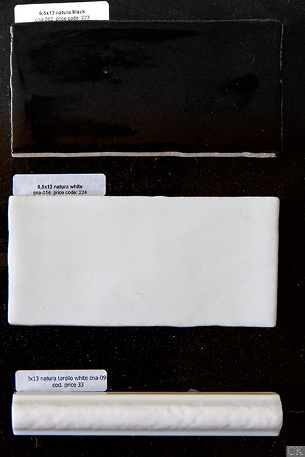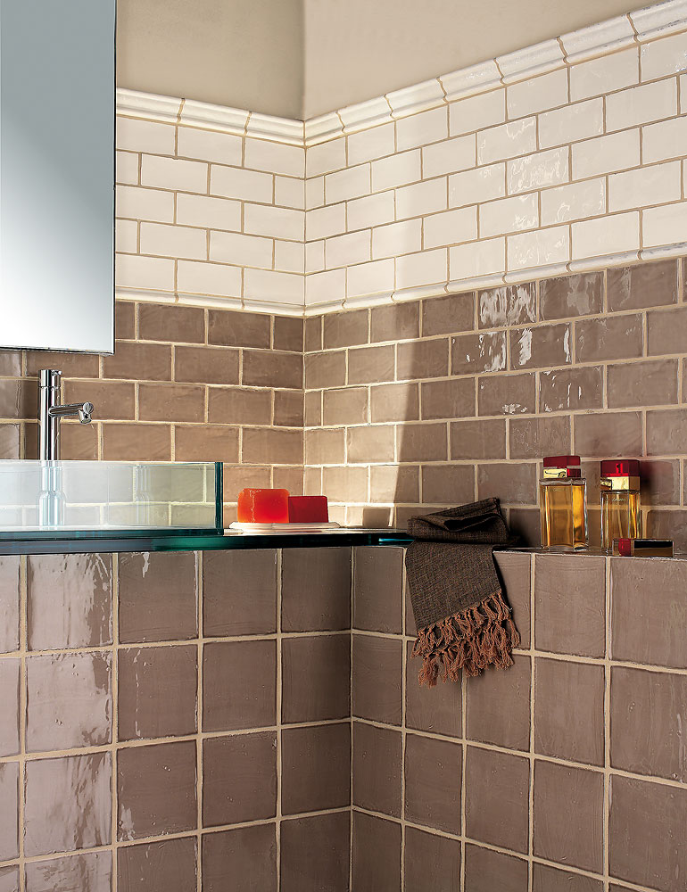 Узкие карандаши Natura torello 2x39,6 см в цветах White, Black, Linen, Ivory и бордюры Natura London 3,5x39,6 в аналогичных цветах. Угловой элемент Torello 2x13 см в пяти цветах (White, Black, Linen, Ivory, Burgundy) с его помощью можно оформить стык плитки без специального подпиливания шва плитки под углом 45° и без использования полиуретановых молдингов.