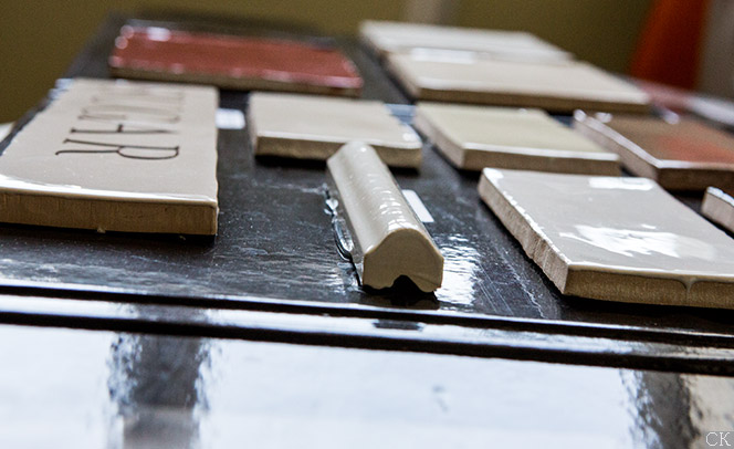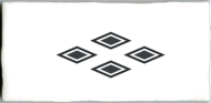 Все элементы коллекции имеют глянцевую поверхность. Основные элементы представлены всеми цветами коллекции. Размеры основных элементов варьируются. Доступны четыре варианта: 6,5х39,6 см, 13х39,6 см, 13х13 см, 6,5х13 см. Для декора рекомендованы разнообразные вставки. Вставка «Ромб» выполнена в трех цветах – белый, черный и лен. Размер данной вставки 6,5х13 см. На поверхность плитки нанесен незатейливый узор из четырех черных или белых ромбов. Выглядит лаконично и стильно.