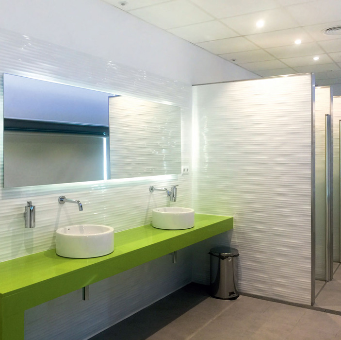Aparici Neutral Noice – более динамичная матовая поверхность с множественными рельефными полосками. Серия фоновой плитки предлагает так же два оттенка фоновой плитки: Neutral Blanco Noise 29.75x89.46 см и Neutral Negro Noise 29.75x89.46 см. Рельефные поверхности эффектно смотрятся в ванных комнатах, при льющейся воде создается эффект водопада. Роскошный и эффектный колорит придают декоративные элементы 29.75x89.46 см Neutral Noise (Gold, Silver). Глянцевая мозаика на сетке с золотистыми кубиками на черном фоне Noise Negro Mosaico 29.75ч29.75 cv и серыми на белом Noic Blanci Mosaico 29.75x29.75 см. Размер каждого кубика в мозаике 5х5 см.