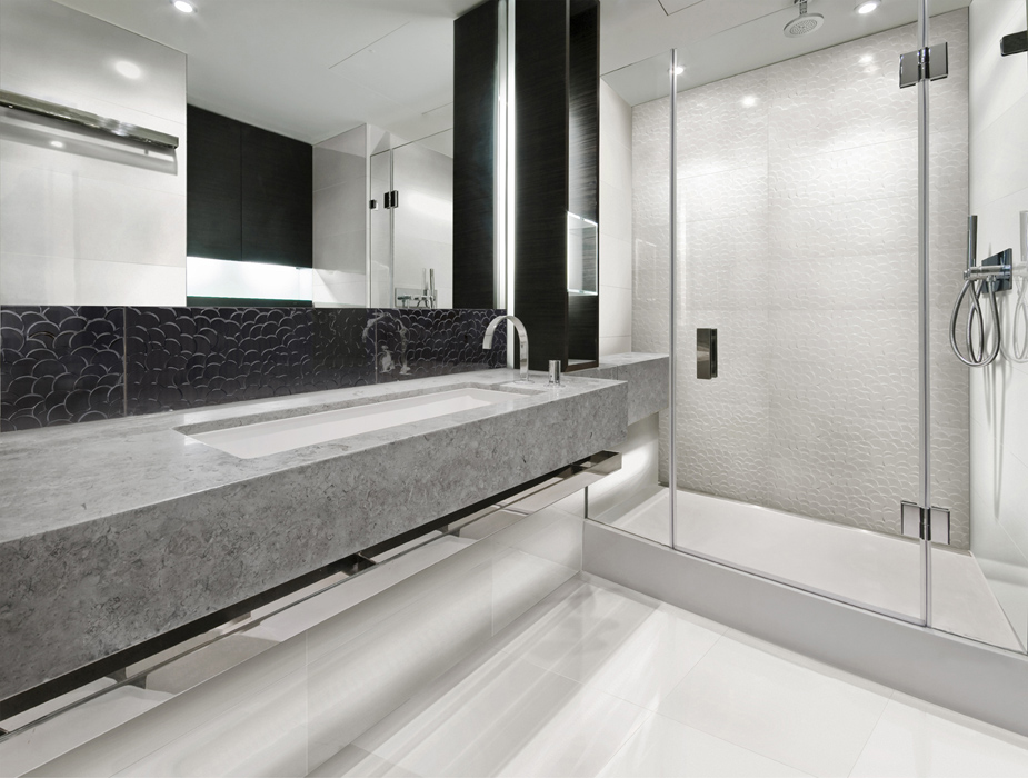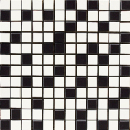 В перечисленных вариантах размер каждого кубика составляет 2.5x2.5 см. Особый шик в интерьер привнесет мозаика с частичным напылением драгоценных металлов Noise Mosaico 29.75x29.75 см (Blanco, Negro) с размером кубика 5х5 см. Вариант укладки возможен с использованием специальных металлизированных элементов, логически разграничивающих мозаичную декорированную зону и зону фоновой плитки:
