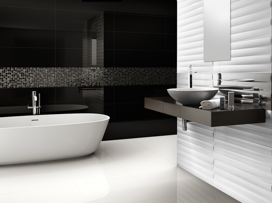 Тема черно-белого всегда эффектно смотрится в любом исполнении, как например серия Nordic Guiza, эффект огранки создает эффект воздушности и постоянной динамики Nordic Blanco Guiza и Nordic Negro Guiza 29.75x89.46 см. Декоративные элементы так же стилизованы под золото и серебро. Толщина черепка 8.6 мм.