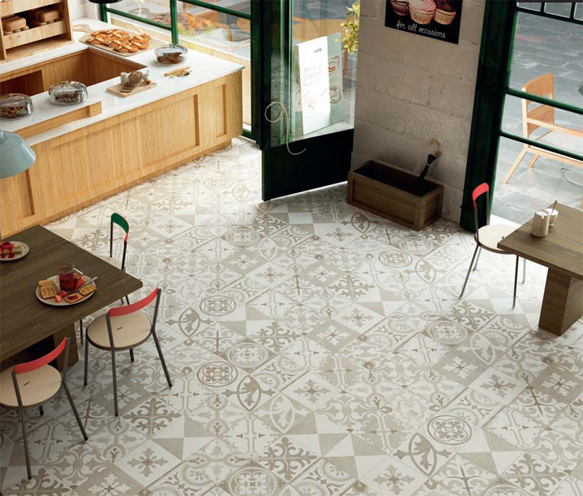 Перечисленные оттенки заказываются кратно квадратному метру. Помимо фоновой плитки в коллекции представлены 16 различных вариаций принта на поверхности керамогранита Retro Random Natural 29.75х29.75 см. В качестве декоративных элементов предлагается керамогранитная мозаика на сетке Retro Ivory Natural Mosaico 5x5 29.75х29.75 см и Retro Random Natural Mosaico 29.75х29.75 см.