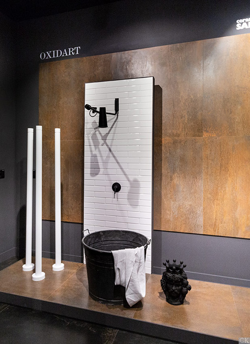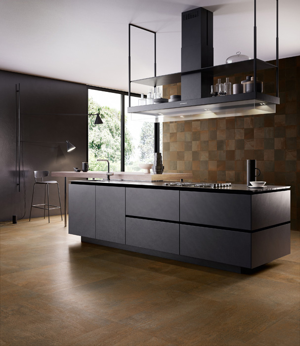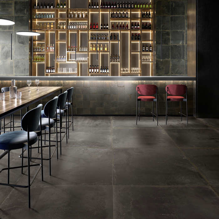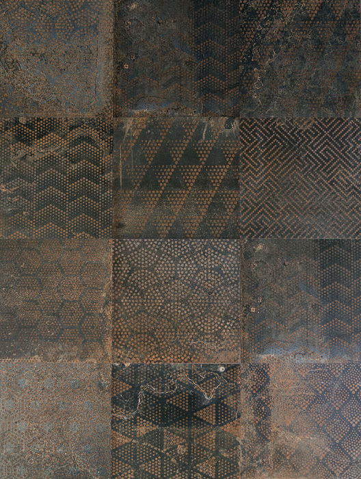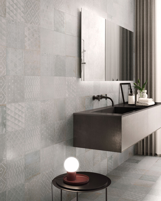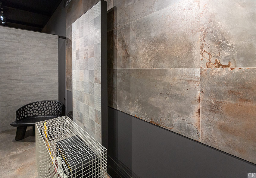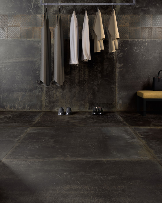 Итальянские дизайнеры Sant’Agostino экспериментируют с невзрачными, на первый взгляд, материалами и превращают их в предметы искусства и дизайна. Коллекция Oxidart воспроизводит поверхность металла старых промышленных построек и фабрик после воздействия капризов погоды. Фабрика воссоздала коррозионные процессы, эффект нагрева и охлаждения, ультраконцептуальной гравировки. Колорирование проходит с использованием цифровых технологий с текстурированными эффектами обработанного листового металла ультракрупного размера в ярких и нестандартных оттенках: 120х120 см, 90х90 см, 60х120 см, 60х60 см. Кроме того, дизайнеры предусмотрели плитку размера 30х60 см и компактный формат 20х20 см. Боковые кромки коллекции Oxidart ректифицируются. Коллекция предлагается в цветовой палитре из четырех оттенков коррозионного металла: Silver – серебро, Cooper – Медь, Iron – сталь, Black – чугун. Медная и серебристая плитка обрабатывается с иллюзией действия кислот и щелочей.