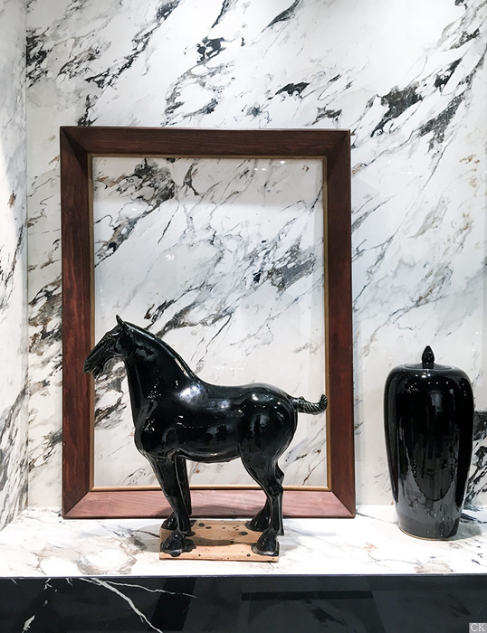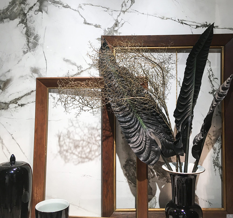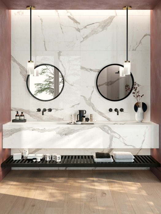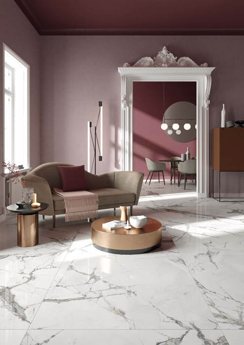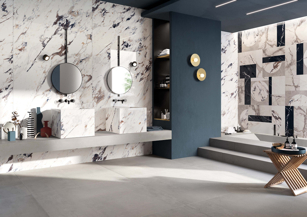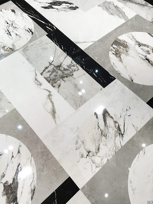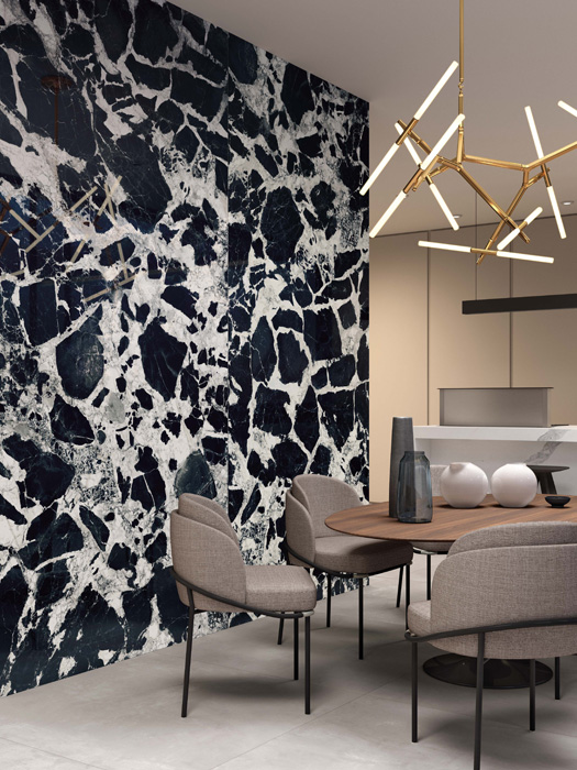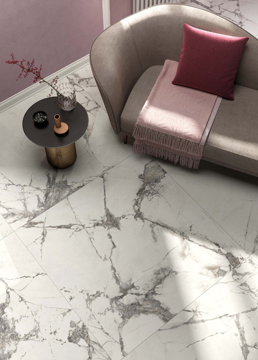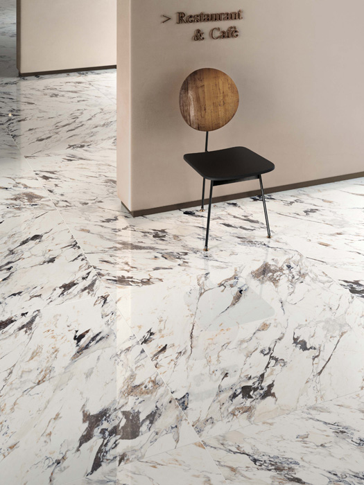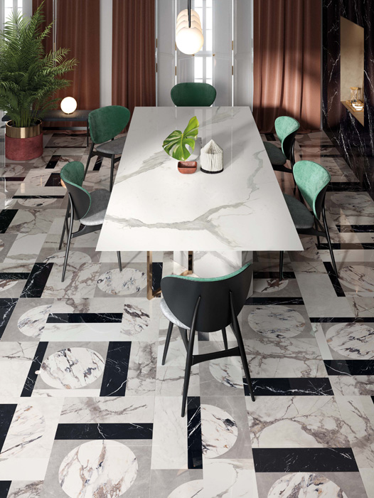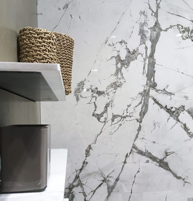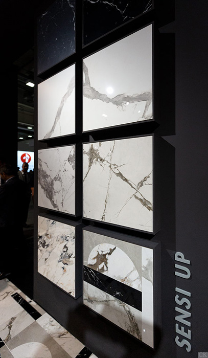 Керамогранит Abk Sensi Up производится в пяти оттенках: несколько оттенков белых мраморов: Sensi Up Invisible Pear, Sensi Up Breccia Melange, Sensi Up Statuario Versilia, и два черных мрамора с контрастными прожилками: Sensi Up Grand Antique и Sensi Up Marquinia Select