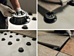 Различные варианты опор позволяют подобрать оптимальную как для конкретного материала, так и для конкретных условий работы. Перед началом укладки необходимо хорошо очистить поверхность. Сначала размечают зоны для стоек или опор, подгоняя правильное направление креплений и расстояния между стойками в зависимости от размера керамогранита.