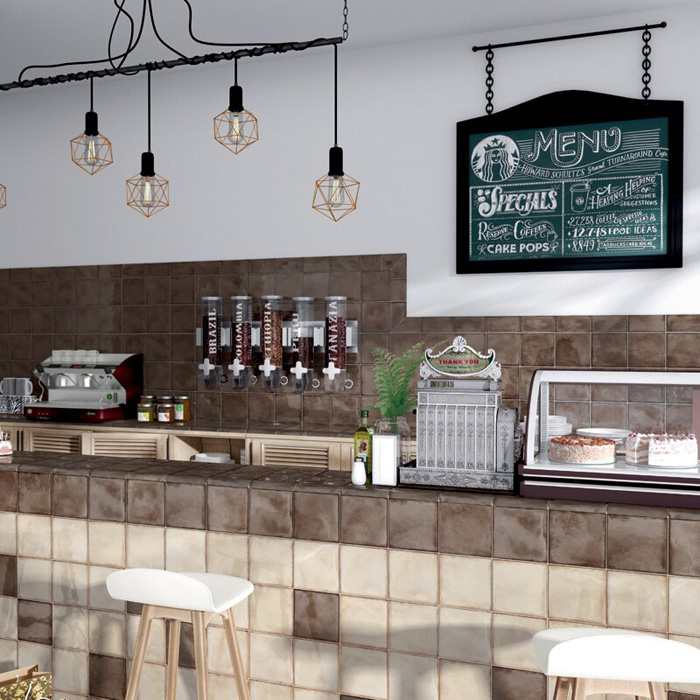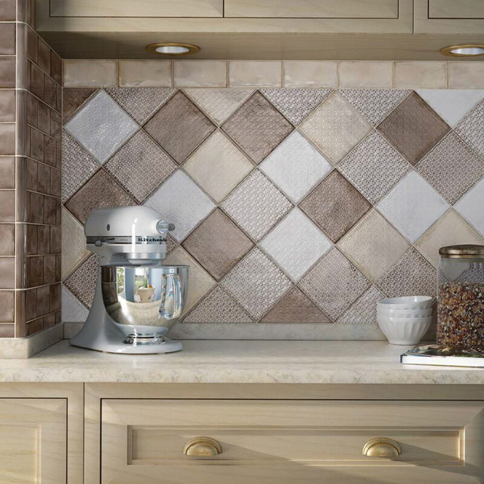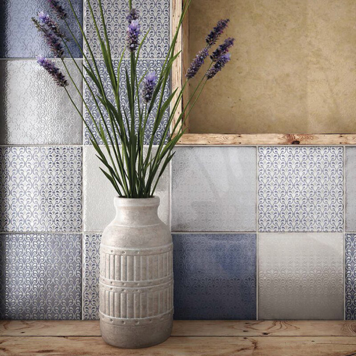 Цветовая палитра предлагается в семи оттенках: White белый и Cream кремовый; Green оливковый и Blue Night голубой; Grey серый и Brown коричневый; Black черный. Плитка рекомендуется для внутренней облицовки интерьера в средиземноморском стиле старинной Испании и Италии. Коллекция стилизуется под майоликовые изделия, которые издавна расписывались вручную и отличались очарованием и придавали интерьеру уют. Фабрика выпускает три вида декоративных элементов: микс а-ля гусиная лапка Royal 15х15 см, геометричный Random 7,5х15 см и с тканевым эффектом Fabric 7,5х30 см. Коллекция Splendours комплектуется полным набором специальных элементов для самостоятельного оформления: столешниц, угловых стыков плитки на окнах и коробах, пристенного пространства, плинтусами, карандашами и карнизами.