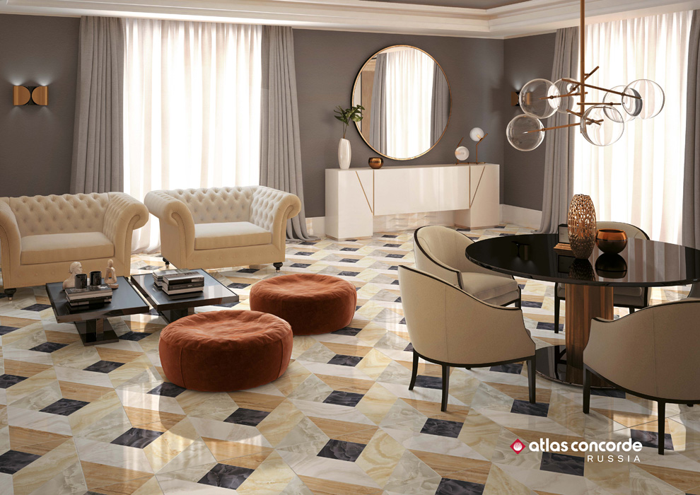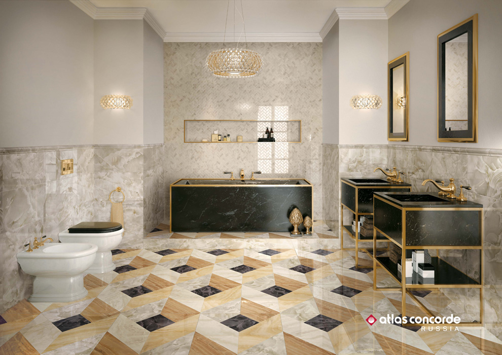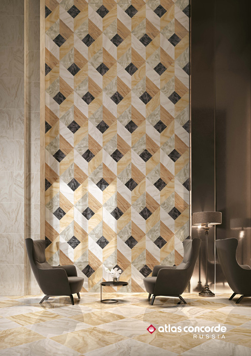 Гармония коллекции Supernova Onyx Atlas Concorde подчеркивается палитрой декоративных элементов: