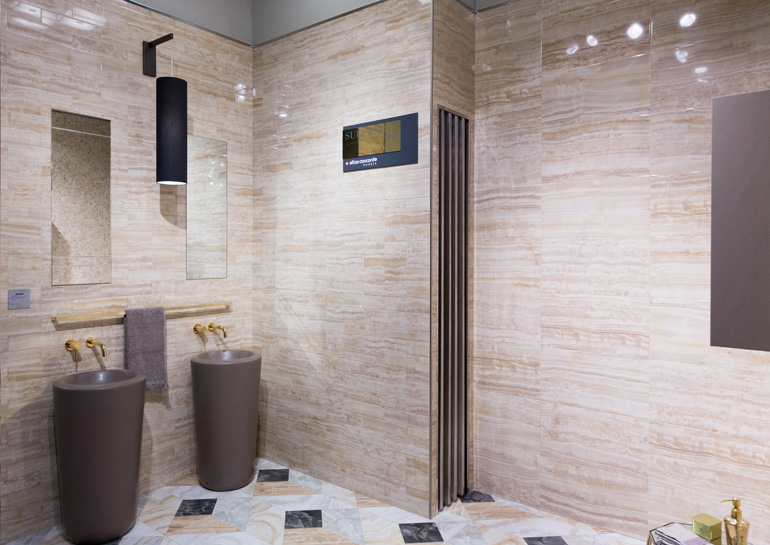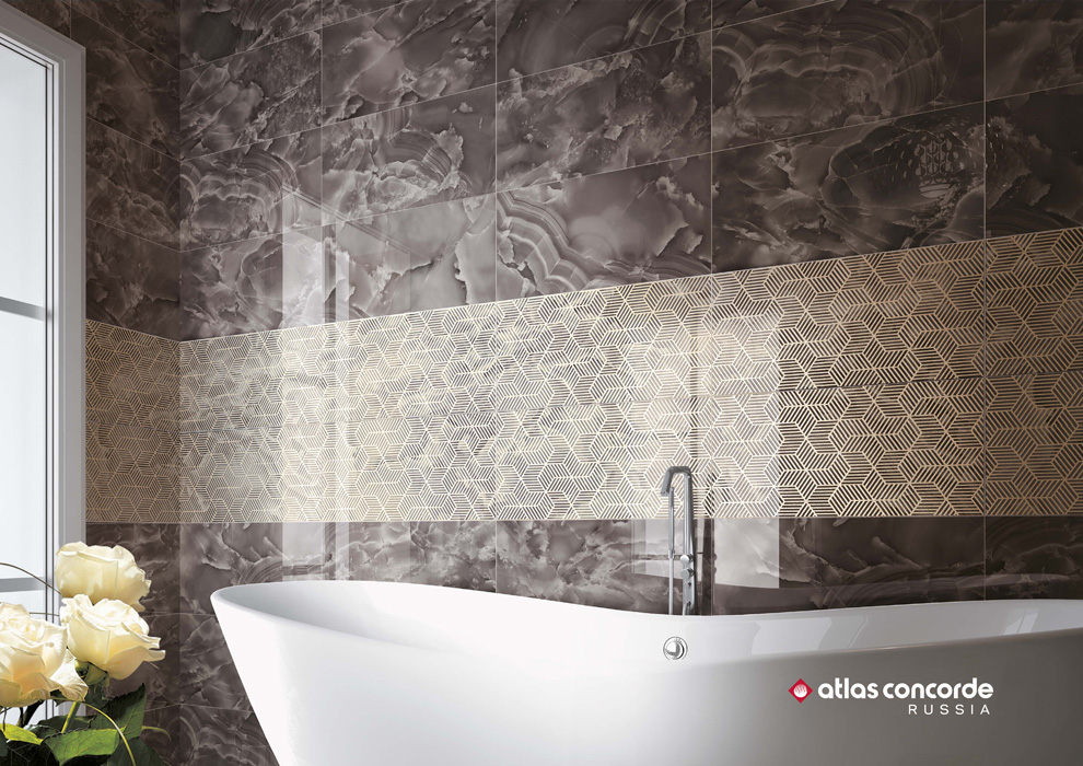 Российcкий концерн Атлас Конкорд продемонстрировала новинку 2016 года - мистически приятгательную коллекцию керамической плитки Supernova Onyx Wall. Дополнение к напольной серии Supernova Onyx floor с эстетикой полудрагоценного природного камня – оникса. Цветовая палитра настенной плитки полностью повторяет цвета напольной серии:
