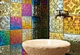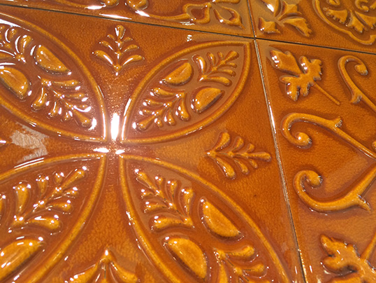 Фантазийная фоновая плитка с классическим объемным рисунком выполнена в цветовой гамме из шести оттенков: