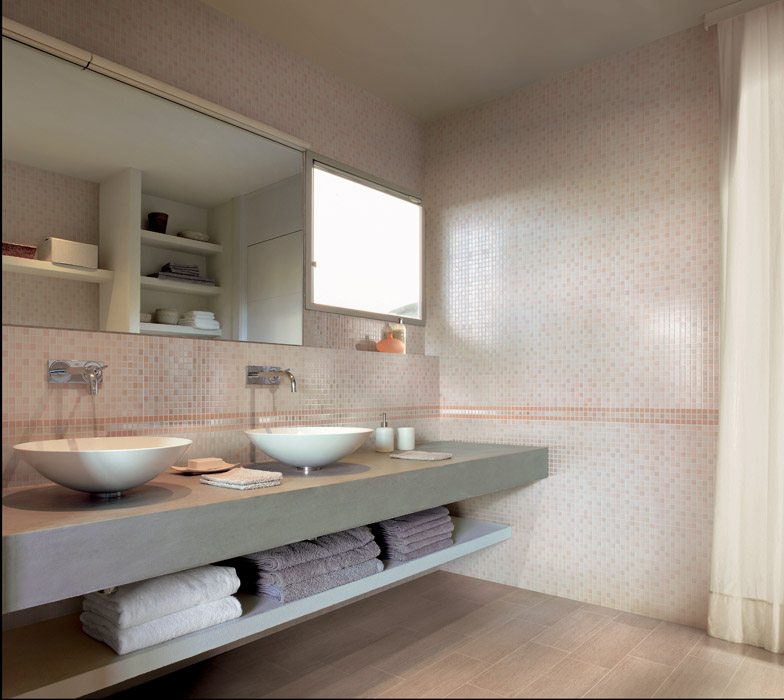 Коллекция мозаичной плитки True от фабрики Атлас Конкорд выглядит ярко и привлекательно. Поверхность плитки блестящая, глянцевая, за счет чего возникает эффект переливов, присущий настоящей стеклянной мозаике. Нежные теплые оттенки обращают на себя внимание и поднимают настроение.