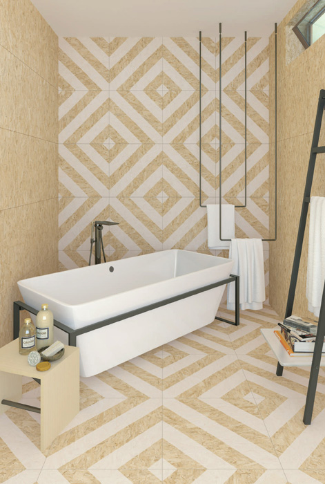 Испанские дизайнеры Vives удивляют своих поклонников все новыми идеями, нестандартным мышлением и представлением повседневных и обыденных вещей и материалов в новом концептуальном свете. Именно такой является коллекция керамического гранита Strand. Поверхность плитки имитирует уютный материал, часто используемый в отделке внутренних пространств – древесностружечной плиты – современные композиционные панели, получаемые путем прессования древесных частиц (опилок или стружек).