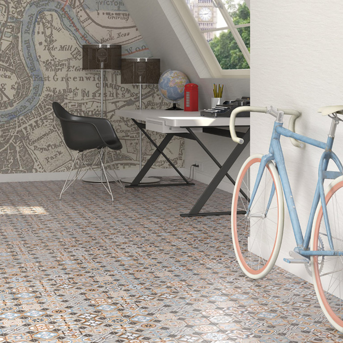 Само название World Parks от Vives можно трактовать как «накидка для мира», тонко передающая утонченный характер и универсальность материала. Коллекция имеет удобную паковку – по 1 м² в каждой коробке. Керамический гранит World Parks от Vives выполнен в одном размере 31,6х31,6 см толщиной 9 мм, изготовлен из традиционной для испанской культуры азулежу – красной глины, покрытой матовой глазурью с нанесенной на поверхность выразительным рисунком. Коллекция напольного керамогранита включает шесть различных серий: